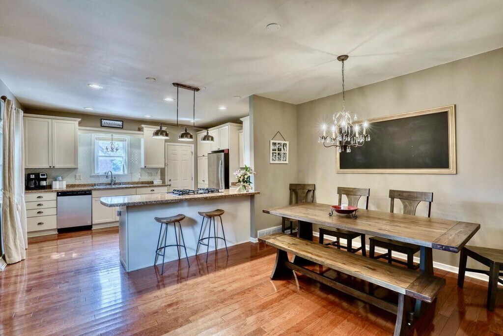 This beautifully updated 3-bedroom, 1-bath Colonial offers a rare combination of charm, modern updates, and sought-after outdoor space. The home features an open-concept kitchen and dining area filled with natural light, complemented by hardwood floors and stainless steel appliances. All three bedrooms are located upstairs and include hardwood flooring and ample storage. The main bathroom has been tastefully updated with a modern vanity, ceramic tile, and newer fixtures. The lower level provides convenient in-home laundry and generous storage space. Outside, enjoy a fully fenced yard with a spacious patio, private fire pit area, and plenty of green space—perfect for entertaining or relaxing. Ideally located just minutes from Brady Street, Downtown Milwaukee, Lake Michigan, and major highways. Walking distance to parks, the Milwaukee Riverwalk, and a wide variety of restaurants, bars, and shops. This home offers both comfort and convenience in one of Milwaukee’s most vibrant neighborhoods.