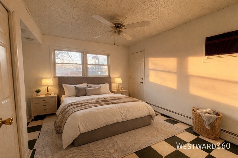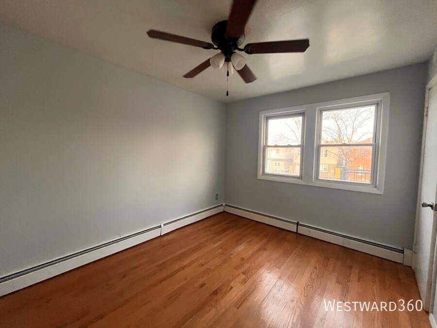 Welcome home to this clean and sun-filled 3-bedroom, 1-bath second-floor apartment located at 1622 N 40th Ave, Unit 2 in Stone Park. This unit features a comfortable layout with beautiful hardwood floors throughout the living areas and bedrooms, creating a warm and inviting atmosphere. The spacious living room offers plenty of room to relax or entertain and is filled with natural light with east and west exposure for sunrises and sunsets, complemented by a ceiling fan for added comfort. The eat-in kitchen is bright and functional, featuring tiled floors, ample cabinet space, and a full-size refrigerator and gas stove, making it ideal for everyday cooking. The bathroom with tiled flooring, a full tub and shower, and space for a full size dresser. All bedrooms are generously sized and offer great natural light. Additional features include baseboard heating, wall mounted air-conditioning units, on a quiet residential setting. Conveniently located near shopping, dining, public transportation, and major roadways, this apartment provides easy access to surrounding suburbs and the city.