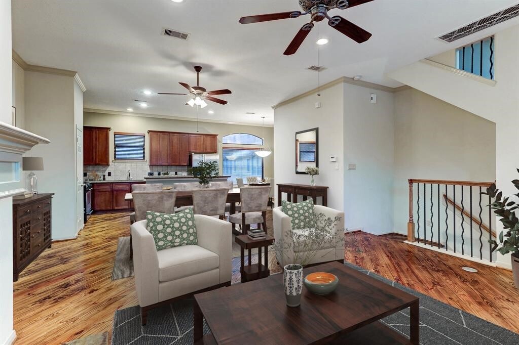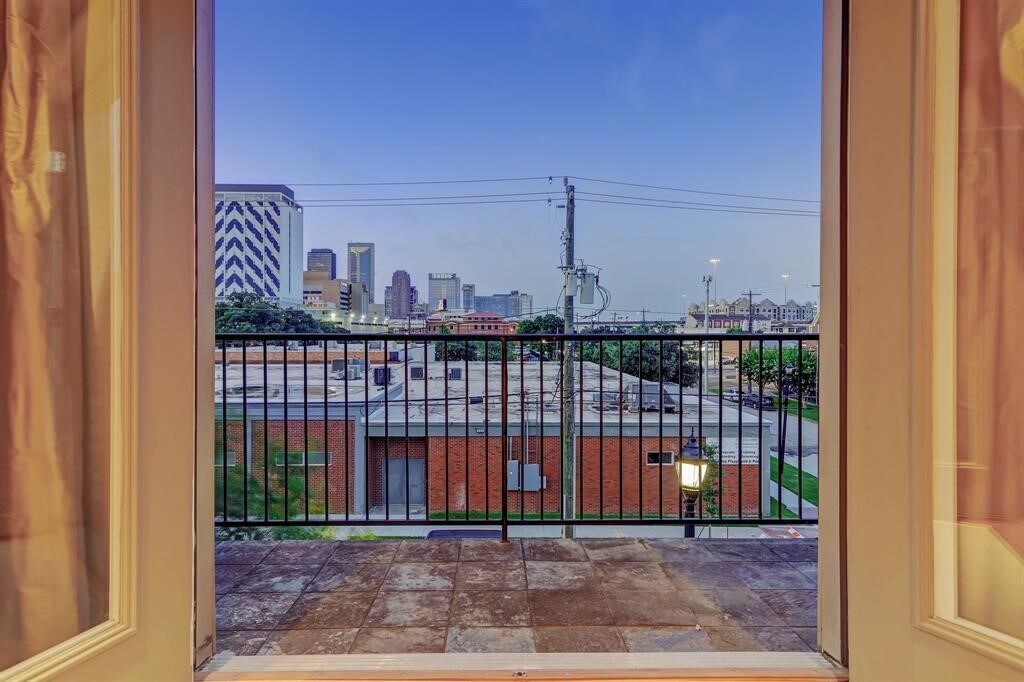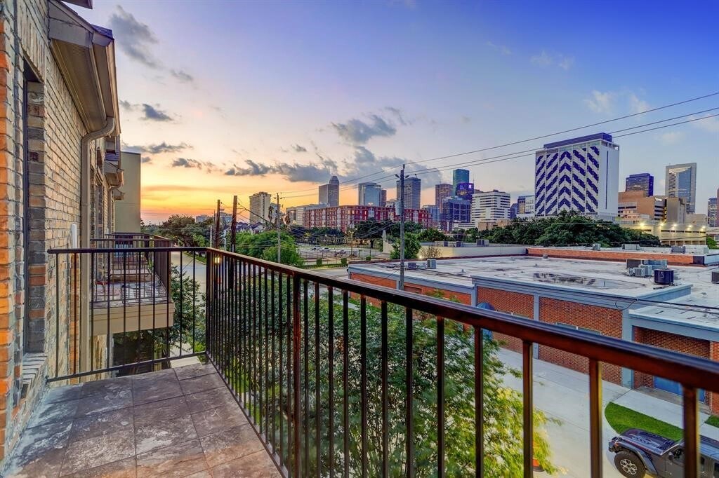 Minutes from Downtown,Montrose and EaDo,this beautifully maintained Midtown townhome epitomizes inner-loop living. This three-story brownstone offers stunning downtown views and loads of natural light. The second floor features spacious living and dining areas with soaring ceilings,windows,a fireplace,and warm pine wood floors,seamlessly connected to a kitchen equipped with granite countertops,and stainless steel appliances—refrigerator included. New stove as of 2024! Upstairs,the primary suite provides a peaceful retreat with recent wood-look flooring (2019) and a private balcony showcasing incredible sunset views of downtown. The spa-like ensuite includes dual vanities,a soaking tub,frameless glass shower,and a walk-in closet. An additional bedroom and secondary bath complete the upper level. Additional highlights include a 2-car attached garage and an HOA that covers gated access,security cameras,and landscaping. Has Tesla/EV charging capabilities! MLS# 10696919