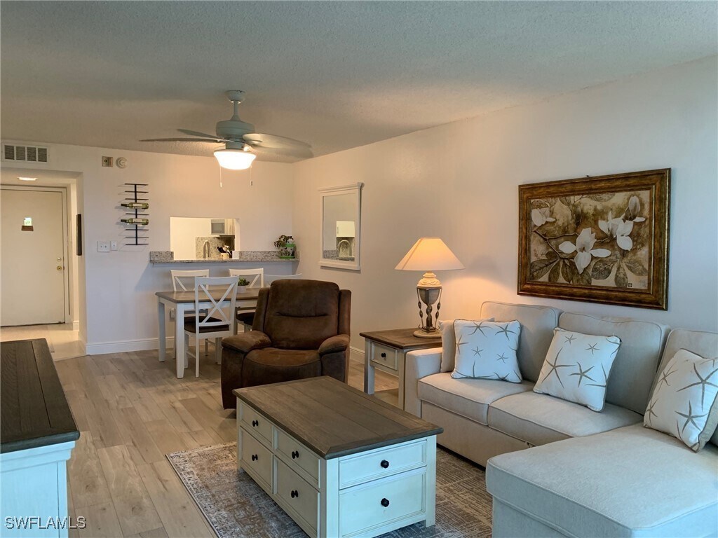 Completely updated unit,and nicely furnished for a 4 month or up to an annual lease available. This is a 2 bedrooms 1 bathroom first floor unit. Luxury Vinyl Flooring throughout the condo. Kitchen has white shaker cabinets with plenty of storage. New Stain-less Steel appliances,refrigerator has water as you open the door. USB ports in two locations for charging your electronic devised. Bathroom has a walk-in level shower with a built-in seat,linear drain and seamless glass doors. In the primary Bedroom is a king size bed and double custom closets. The guest bedroom has twin beds for your visitors during your stay. Seven Lakes is a 55+ community. All amenities are available to the tenants. Two people have unlimited golf access with no fees. There are 6 clay Tennis Courts,Pickle Ball Courts,Shuffleboard,Bocce Ball,6 Heated Pools for our outdoor activities. Exercise Room,Painting/Pottery room,Billiards,Wood Shop,Card Games,On-Site Restaurant,Auditorium that hosts Dinners and Dances along with other Entertainment. Seven Lakes is located near shops,restaurants,RSW Airport and a short drive to the beaches. Come see our community you will love Seven Lakes.