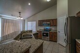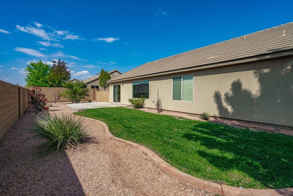 Don't miss this darling Painted Desert home. This 1,522 sq. ft. 3 bedroom, 2 bathroom, 2 car garage, nice open floor plan, large patio with a fully fenced yard home is located on a quiet interior street location. This home has new stainless steel appliances which include refrigerator, microwave, range, dishwasher and washer/dryer upon request. Very nice yard w/grass area. This home is in the Desert Hills High School, and Dixie Power boundaries. There is a community pool, and the HOA maintains the front yard landscape. *Vacant and can be shown anytime*
