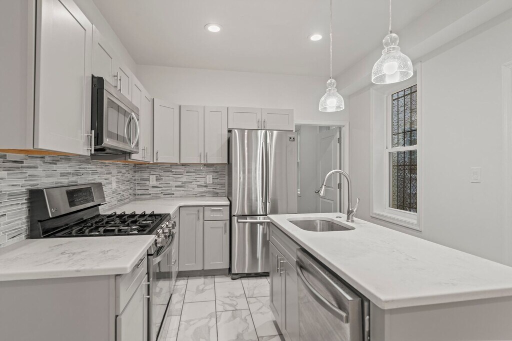 NEED TO KNOW: - 4bed / 2bath house available for 2026-2027 year. 2 Blocks from White Hall. - 4 bedrooms, but this is normally rented by anywhere from 3 to 4 people. - If your group count is less than the number of bedrooms, that's OK, and you'd have extra space! Or, if you want to fill it, you can sign a lease and simply add others to it anytime later. UPGRADES UNDERWAY: Secure package drop-box for deliveries. Exterior lighting & security cameras. HIGHLIGHTS: Located inside the Temple Police Patrol Area, less than 1 block from FLIGHT shuttle stop, and just 2 blocks from campus. Free laundry machines. Roomy, eat-in kitchen. Large fridge space. Large counter space. Dishwasher. Interior brick wall. No carpet. Spacious bedroom sizes, with sound insulation. Very large living room. Private outdoor patio. Fire-safe security bars on all windows. Basement for more space. Professionally cleaned prior to move-in. Parking - no permit needed, park 24/7! ALL NEW within the last few years: - Key-less keypad entry. - Hard flooring. - 2 Bathrooms with tiled flooring, tiled showers, tub, glass block windows, and wired with blue-tooth audio for the ultimate bathroom experience. - Kitchen with granite counters, tiled back splash, tiled floor, cabinets, stainless steel appliances, island w/ breakfast bar. - Laundry machines (located on same floor as most of the bedrooms!). - Basement for more space. - Recessed lights. - Electric, plumbing, ducts, central A/C and furnace, hot water heater. - Overhead, dimmable, fan/light combos in every bedroom. - Nest thermostat. - Concrete patio. LEASE DETAILS - Trash utility service is included in the rent. - You may split rent by bedroom size, if budgets differ in your group. - We have other units within 1 block - if you want to live by friends, we give large reductions in rent if you rent more than 1 property! Please inquire! - Attentive property management team, who are highly desired in the Philadelphia market. LEASE DETAILS - Trash utility service is included in the rent. - You may split rent by bedroom size, if budgets differ in your group. - We have other units within 1 block, or that may be attached to this - if you want to live near friends, we can offer large reductions in rent if you rent more than 1 property. Please inquire! - Attentive property management team, who are highly desired in the Philadelphia market.