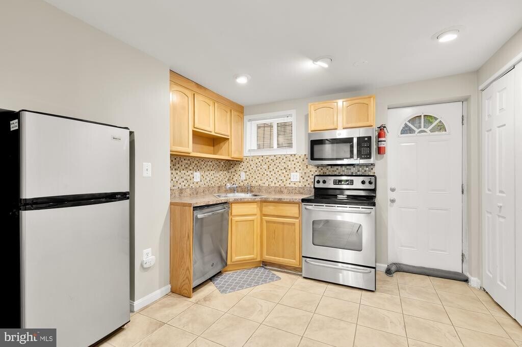 Discover your new DC home in this delightful English basement studio located at 1632 New Jersey Ave NW! This inviting space combines comfort and functionality, perfect for urban living. Enjoy an open floor plan that maximizes space, featuring a bright nook with a window overlooking the front lawn—ideal for a desk or lounge chair. The kitchen includes stainless steel appliances and ample cabinet space, along with a pantry. The bathroom offers contemporary finishes with a walk-in shower, a vanity with storage, and a mirror over the sink that doubles as a medicine cabinet for additional storage. The in-unit stacked washer and dryer provide added convenience for your busy lifestyle. Just off the back of the kitchen, step outside to your own backyard oasis. Located on the cusp of both the Shaw and Truxton Circle neighborhoods, you’ll have easy access to local shops and dining, including Dacha Beer Garden, The Royal, Big Bear Cafe, and Eebee's Corner Bar. Stocking up on groceries is a breeze with Giant grocery store just 0.5 miles away. Public transport is easily accessible, with the Shaw/Howard Metro stop just 0.3 miles and multiple bus routes steps from your door. Pets under 40 lbs are allowed, and no smoking of any kind is permitted on the property. Please note that the fireplace is decorative only and non-functional. The Tenant will pay the Landlord directly for all utilities. The monthly income requirement is 3x the rent price, and a minimum credit score of 700 is required. A non-refundable application fee of $50 per person applies.