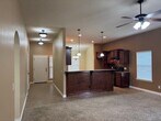 3 bedroom home in the Featherstone community in SWOKC. Large dining area to the front of the home,open kitchen with black electric range,granite counters and high bar-top to the living area. 3 bedrooms in one hallway. Master suite features double vanity,separate garden tub and shower. Secondary bedrooms at the end of the hall. Great curb appeal with covered front porch and mature trees. Covered back patio as well,with fully fenced backyard,pet friendly with additional refundable pet deposit.