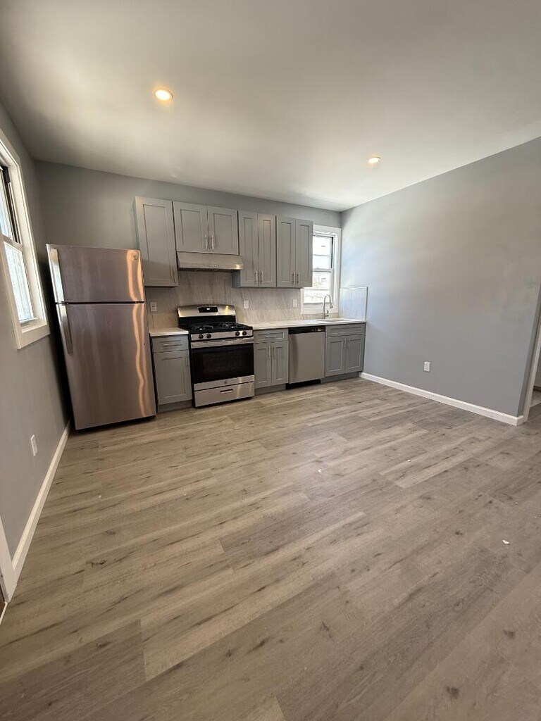 Be the first occupants of this newly renovated building with new kitchen, bathroom, walls, floors, almost everything redone. Third floor apartment with 2 bedrooms, 1 full bathrooms, living room, and large multi-windowed kitchen. The kitchen is furnished with new stainless steel GE appliances - refrigerator, gas range, dishwasher, hood. GE branded washer and dryer. Central A/C and heating in the building. Rear door access leads to a balcony space to enjoy your morning coffee. Off street parking available, inquire about garage space, if needed. Newly renovated building. Rear balcony or patio space to enjoy some private outdoor time. Off street parking and garage available for rent. Close access to major highway for easy commute access. Less than 5 minute drive away from Stratford train station.