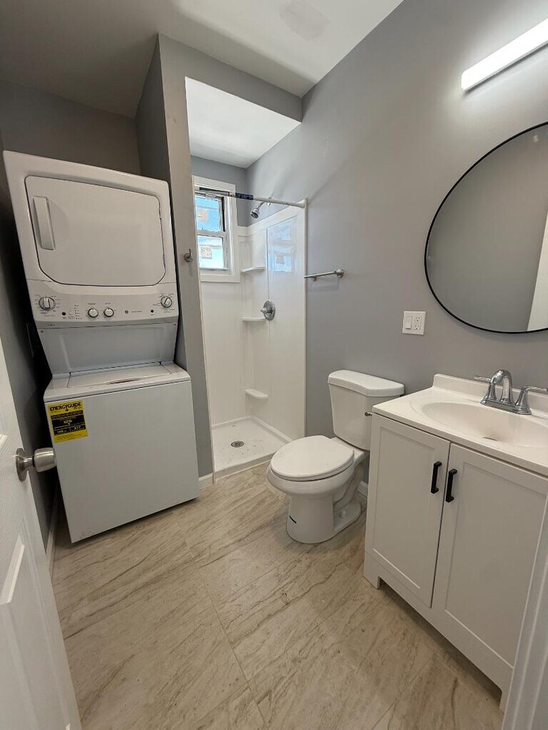 Be the first occupants of this newly renovated building with new kitchen, bathroom, walls, floors, almost everything redone. Second floor apartment with 3 bedrooms, 2 full bathrooms, living room, and large multi-windowed kitchen. The kitchen is furnished with new stainless steel GE appliances - refrigerator, gas range, dishwasher, hood. GE branded washer and dryer can be found in the 2nd bathroom. Central A/C and heating in the building. Rear door access leads to a balcony space to enjoy your morning coffee. Off street parking available, inquire about garage space, if needed. Newly renovated building. Rear balcony or patio space to enjoy some private outdoor time. Off street parking and garage available for rent. Close access to major highway for easy commute access. Less than 5 minute drive away from Stratford train station.