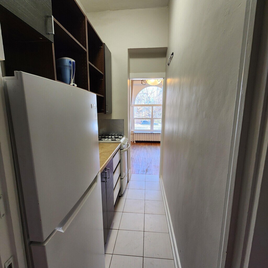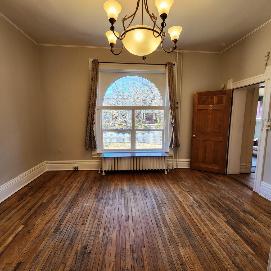 Charming vintage studio apartment on main level of 5-unit building, available now. This 100+ year-old home offers character and natural light with a large front window facing the street and yard. Hardwood floors and high ceilings throughout the main living area give a warm, open feel, while two storage closets provide practical space. Galley kitchen includes a gas range and refrigerator (no dishwasher or microwave). Bathroom features a vanity and classic clawfoot tub/shower. Boiler radiator heat; window A/C units may be installed but are not provided. Shared washer and dryer are located in the basement. Urban gardening space available in the front yard. Details: • Rent: $925/month • Flat-rate utilities: $110/month (paid with rent) • Optional off-street parking: $45/month (space behind building) • Security deposit: $925 • One cat permitted; no dogs • Denver License #: 2022-BFN-0014306