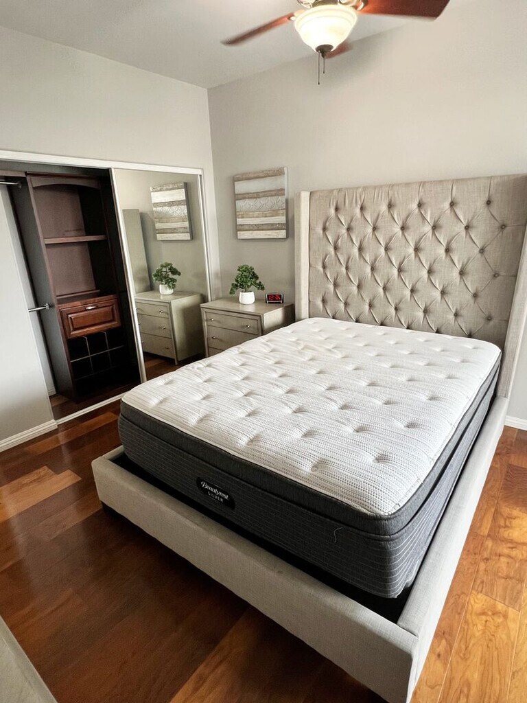 Property Id: 1500724 Luxury 1 bed/1 bath condo in San Diego with all utilities included. Pet-friendly with swimming pool, fitness center, and secure building. Near parks and hot tub spa. Off-street parking and garage available. Don't miss out on this fully furnished gem! You can fit 5 people here with two pull out couches in our HUGE living room!