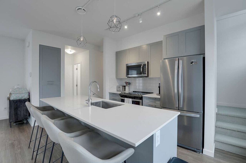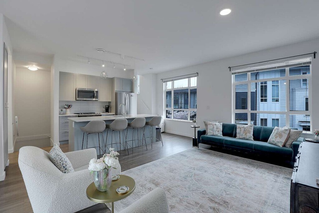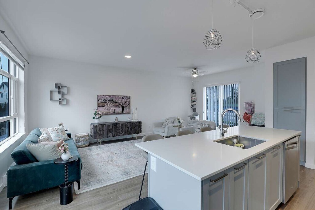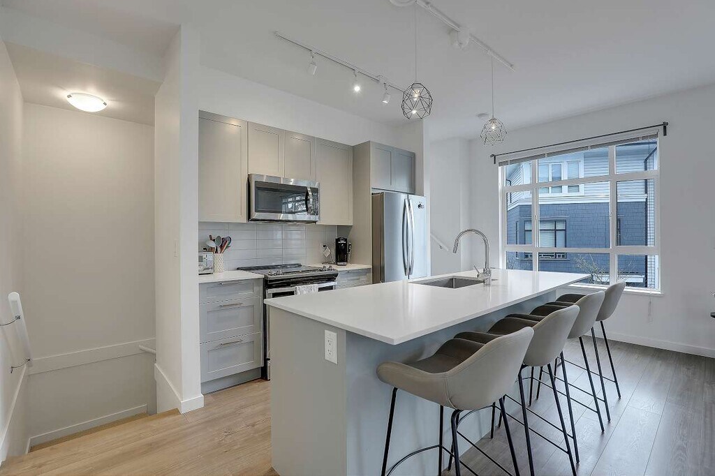 Spacious and modern townhome available at Fleetwood Rise West; this bright 3 level, 2 bedroom, 2.5 bathroom home offers approximately 1,737 sq ft of functional living space in a highly convenient Surrey location. The main floor features an open concept layout with 9' ceilings, wide plank laminate flooring, and a contemporary kitchen complete with a large island, glass cooktop, stainless steel appliances, and ample cabinetry. A convenient powder room is located on the main level, making the space ideal for entertaining. Upstairs you'll find two generously sized bedrooms, including a primary suite with a walk-in closet and private 3 piece ensuite. Enjoy year-round comfort with air conditioning and the convenience of in-suite laundry. The oversized double side-by-side garage provides exceptional space for vehicles, storage, or recreational gear. Located close to schools, shopping, recreation facilities, Surrey Sports & Leisure Complex, and the future SkyTrain expansion; this home offers both comfort and accessibility in a growing neighbourhood. Suite Features: - 3 Bedrooms - 2.5 Bathrooms - Approx. 1,737 sq ft - Air conditioning - Open concept layout with 9' ceilings - Laminate flooring throughout main living areas - Modern kitchen with large island and glass cooktop - Stainless steel appliances - In-suite laundry - Decent sized balcony - Oversized double side-by-side garage Lease Terms: - Utilities: 100% tenant responsibility - Pets subject to owner approval - No smoking - One year lease with month-to-month thereafter - Showing upon request; first come first serve Professionally marketed and managed by Sanveer Gill, Licensed Property Manager. Century 21 Coastal Realty Ltd.