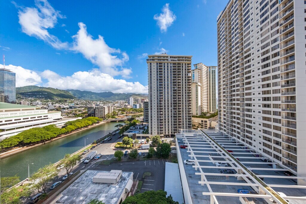 Welcome to Marina Towers in Waikiki! This bright and breezy 2-bedroom, 2-bath unit on the 14th floor offers beautiful canal and mountain views with cool tradewinds all year round. The spacious layout includes a comfortable living area, large windows for natural light, and a functional kitchen with plenty of storage. Both bedrooms are well-sized, and the primary suite features its own private bath. Enjoy relaxing on the lanai while taking in the peaceful Ala Wai and city scenery. Residents can enjoy resort-style amenities including a heated pool, BBQ area, cabanas, secured entry, guest parking, and an onsite resident manager. Conveniently located at the edge of Waikiki—close to shopping, dining, beaches, bus lines, parks, and more. Utilities included: Internet, Cable, Additional TV Cable, Water, Sewer, and Trash. Move-in ready and available now!