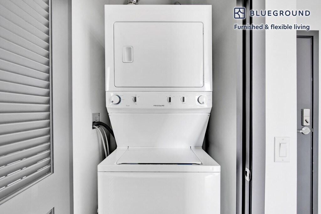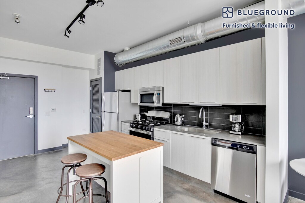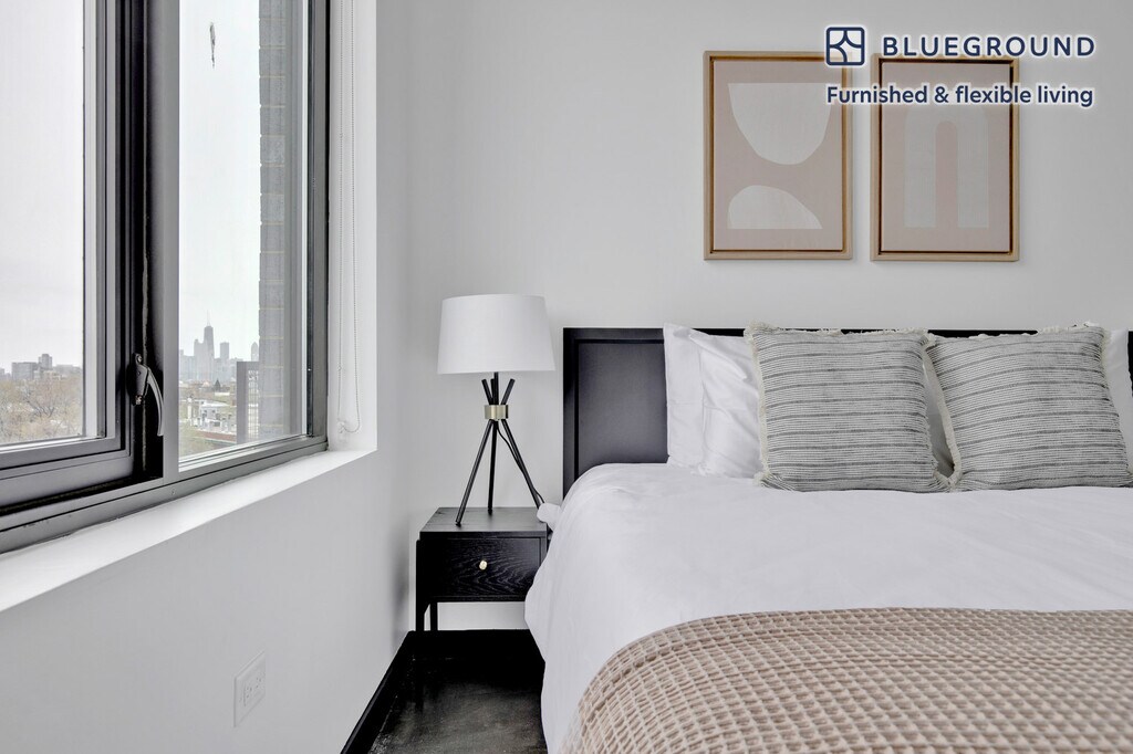 Show up and start living from day one in Chicago with this stylish one bedroom Blueground apartment. You’ll love coming home to this thoughtfully furnished, beautifully designed, and fully equipped Wicker Park home with stunning balcony views over the city. (ID #CHI662) The advertised rate of $3,370/month is the lowest available price, based on a 12 month(s) stay with a move-in date of May 7, 2026. Rates vary depending on the duration of stay, season, and other parameters. For exact pricing and additional pricing components, please visit our website and enter your desired move-in and move-out dates. The rate is applicable when billed upfront; it can be higher if billed in multiple payments. Brokers are welcome to reach out. Were you looking for an unfurnished lease? Try Blueground instead and upgrade from unfurnished to furnished living: - Furnished at rates comparable to unfurnished - No setup or furniture costs - save thousands - Move-in ready - save time, just bring your suitcase Designed with you in mind Thoughtfully designed with bespoke finishes, modern furnishings, and a fully equipped kitchen, you’ll enjoy that “I’m home” feeling with this Blueground apartment. Whether you’re lounging in your stylish living room streaming the latest and greatest entertainment on the smart TV or premium wireless speaker, or getting some well-earned rest on the superior quality mattress with luxury linens, you’ll fall in love with everything this Wicker Park apartment has to offer. This apartment also offers in-apartment laundry. Sleeping arrangements King Bed, 70.8in/180cm Amenities Building amenities unique to this one bedroom apartment include an on-site: - BBQ Area - Dryer - Elevator - Washing machine - Pets allowed Arrival and ongoing support The entire apartment is yours to enjoy! Throughout your stay, you’ll have access to our Client Experience team through the Blueground App. You can schedule additional cleanings, submit maintenance requests, and view our neighborhood recommendations with just a few taps. We’ll share all details upon confirmation of your stay. Ideally Located This furnished apartment is situated in Wicker Park, one of Chicago’s trendiest neighborhoods. The area, located in just northwest of downtown Chicago, is known for offering an abundance of dining and entertainment experiences. It is an element that renders Wicker Park a hotspot for business professionals and young families. The Flat Iron Arts building is perfect for creatives in search of inspiration. The Loop and River North are only 10 to 15 minutes away by train. Other things to note Building amenities may have an extra cost. This Blueground apartment has flexible lease options, allowing you to book it for one month, a year, or more. Pets are welcome, though weight limits and breed restrictions apply and may incur fees. We take great pride in ensuring every photo displayed is shot in our own units with our actual furnishings. That said, we regularly refresh our decor and furniture arrangement, which may differ from what’s pictured. Also note - This apartment is located on a busy street - This building contains both residential and commercial properties [SI]