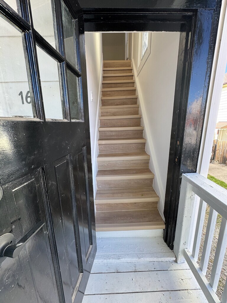 3 bedrooms, 1 bathroom. Large bedrooms (2 of the 3), Covered balcony, new kitchen, new bathroom, new floors, laundry in basement close to public transportation, parking, walking distance to restaurants, the waterfront and more