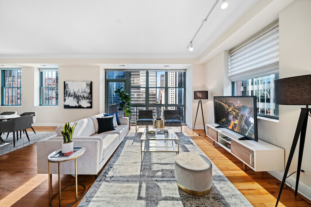 Spectacular Southeast facing corner unit with stunning views of the Chicago River located in the heart of the Fulton River District/West Loop at Randolph Place Residences! As you walk into this beautiful unit,you are greeted with a cozy entry foyer and long hallway that leads into the expansive open living space. This bright upgraded loft is flooded with natural light from the sizable windows in addition to a spacious flowing layout which is perfect for entertaining! Kitchen features include cherry cabinets,granite countertops and newer appliances. This three bedroom floorplan has two large fully enclosed bedrooms along with a third bedroom that was being used as an office/den space,but can also be a third bedroom. The third bedroom/den space features a gas ventless fireplace with granite/marble surround together with beautiful built-in bookcases on each side and french doors. The primary suite has an enormous walk-in closet with customized shelving and leads into the primary bath with a long double vanity,soaking tub and a separate shower. Second bedroom has windows installed to allow natural light to come through. Other unit features include hardwood floors,fresh paint throughout,11 ft. ceilings,in-unit washer/dryer and central heat/air. Large east facing balcony has gorgeous river & city views along with beautiful park & green space views. Included in the price is a separate detached bonus room (300+sf) across the hall that can be used for additional storage and/or more office space. Building hallways,lobby and fitness center were all recently redone within the past few years along with adding an Amazon Hub package delivery system in addition to the large building receiving room. Rent includes cable TV with HBO & Showtime & high speed internet. Randolph Place Residences is located in an unbelievable location within walking distance to all the Randolph/Fulton St. restaurants,the loop,Metra/public transportation,French Market,expressway,several grocery stores and shopping as well as the expanded Chicago Riverwalk entrance is across the street! Two car tandem heated garage parking spot included in price. MLS# MRD12493550 Based on information submitted to the MLS GRID as of [see last changed date above]. All data is obtained from various sources and may not have been verified by broker or MLS GRID. Supplied Open House Information is subject to change without notice. All information should be independently reviewed and verified for accuracy. Properties may or may not be listed by the office/agent presenting the information. Some IDX listings have been excluded from this website. Prices displayed on all Sold listings are the Last Known Listing Price and may not be the actual selling price.
