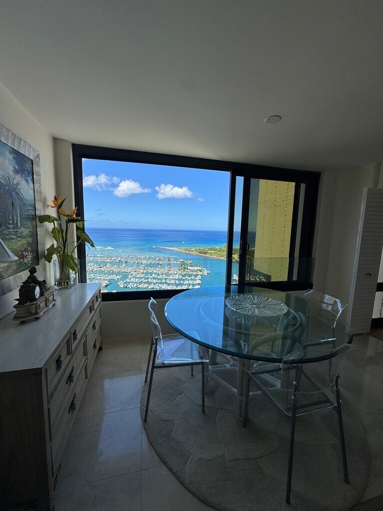 Welcome to Yacht Harbor Towers. This fully furnished and luxurious 2-bedroom penthouse, located on the 40th floor of the Diamond Head Tower, offers breathtaking panoramic views of the ocean, Yacht Harbor, Magic Island, and Ala Moana Beach Park. Spanning a spacious 1,453 sq. ft., this single-level residence features elegant hardwood and marble/granite flooring, central air conditioning, and a fully equipped modern kitchen designed for comfort and convenience. The unit also includes two side-by-side parking stalls. Please enjoy spectacular Friday night fireworks from the comfort of your home! And a variety of resort-style amenities, including a swimming pool, whirlpool, tennis court, meeting room, and fitness center. Rent $5,500 + GE Tax per month (all the utilities are included). Long-term lease only. No pets and no smoking permitted. Welcome to Yacht Harbor Towers. This fully furnished and luxurious 2-bedroom penthouse, located on the 40th floor of the Diamond Head Tower, offers breathtaking panoramic views of the ocean, Yacht Harbor, Magic Island, and Ala Moana Beach Park. Spanning a spacious 1,453 sq. ft., this single-level residence features elegant hardwood and marble/granite flooring, central air conditioning, and a fully equipped modern kitchen designed for comfort and convenience. The unit also includes two side-by-side parking stalls. Please enjoy spectacular Friday night fireworks from the comfort of your home! And a variety of resort-style amenities, including a swimming pool, whirlpool, tennis court, meeting room, and fitness center. Rent $5,500 + GE Tax per month (all the utilities are included). Long-term lease only. No pets and no smoking permitted.