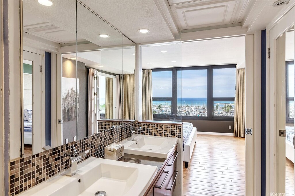 Welcome to this 2 bedroom, 2 bathroom corner end unit, conveniently located in the coveted Diamond Head Tower boasts incredible ocean views. This non furnished unit was recently partially updated in 2025 with new appliance suite (washer/dryer and kitchen appliances), and is located in a corner breeze corridor with ample natural light and extra windows as compared with other units in the building. The corner/end unit is especially spacious, with separate and secure entryway to the second bedroom for privacy. Interior features include central air conditioning, storage shelves, stove, chandelier, master bedroom walk in closet, and washer/dryer, all while conveniently located across from the Waikiki Yacht Club, abutting Ala Moana Shopping Center (corner of Ala Moana Blvd. and Atkinson Drive). Monthly rent includes Tax, 1 reserved covered parking stall, electricity, gas, digital cable, internet wifi, and all of the amenities Yacht Harbor Towers has to offer. Amenities include beautiful pool with Jacuzzi and party area, tennis courts, and individual gas BBQ stations. Monthly rent is $4,750.00, and the refundable security deposit is $4,750.00 (1 months’ rent). No Pets. No Smoking.