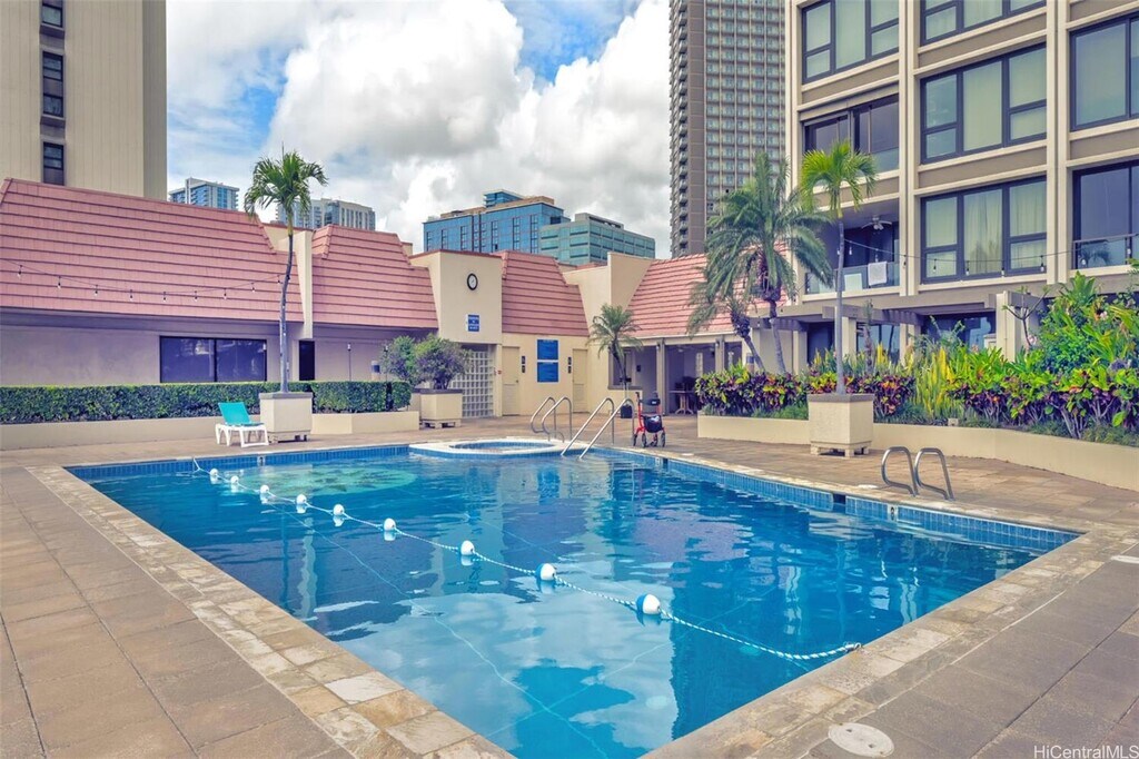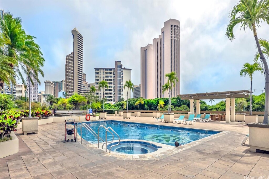 Stunning views from this large, bright, clean one-bedroom unit with an enclosed lanai in the Diamond Head Tower. New paint, new floor, all new appliances, no popcorn ceiling, quartz counter-top, and central AC. Rent includes electricity, AC, gas (range/oven), hot water, water/sewer, cable, and internet (Spectrum). Recently renovated building, including modernized elevators. Resort-like amenities including sparkling pool, rec area, jacuzzi, pickle ball/tennis court, and relaxing, clean BBQ stations. This building is well-maintained and situated in a prime location, just outside Ala Moana Beach Park and Ala Moana Shopping Center, with a resident manager, 24-hour security, and a secured building. Prime covered parking stall located just outside the building entrance. Guest parking is available. No smoking, no pets, and renters' insurance is required. Credit and income requirements. Please leave your contact information to receive a callback for an easy showing. Pacific Core Properties Hawaii LLC (RB21977)