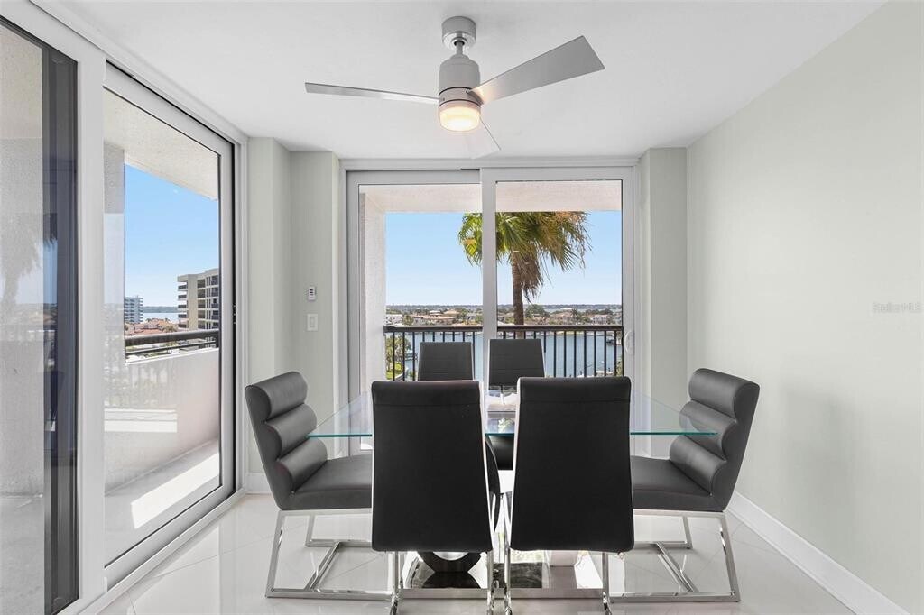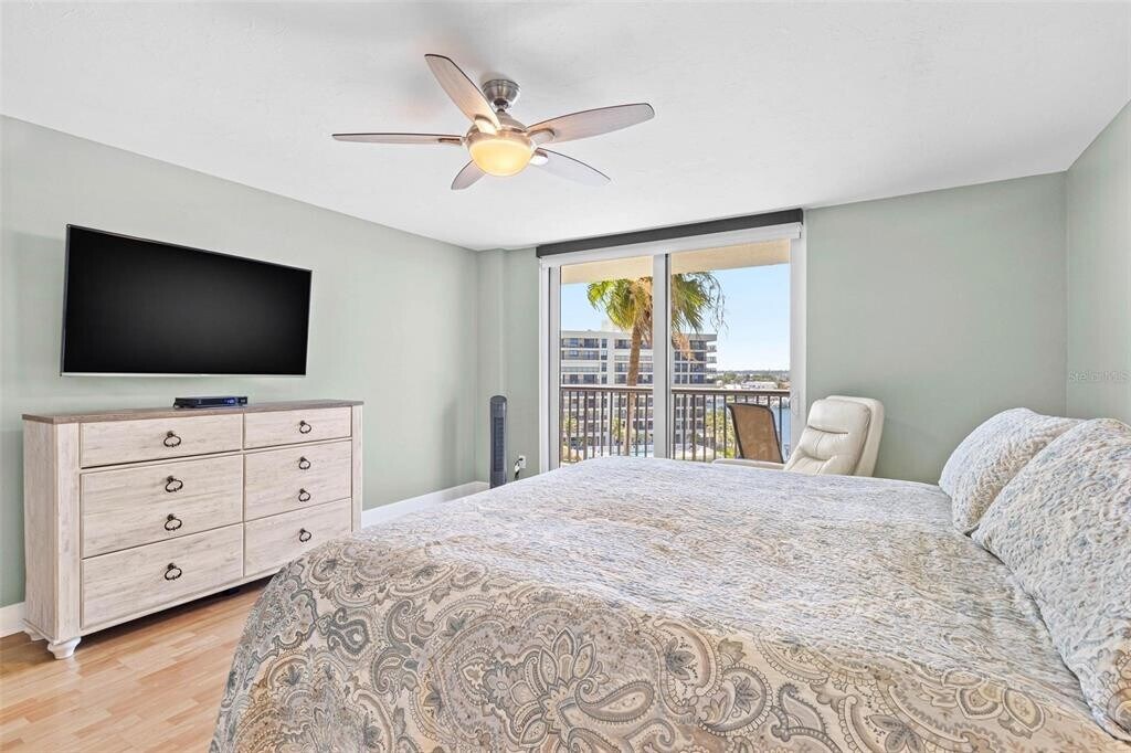 Live here! Tastefully remodeled condo in the gated and guarded,Gulf-front beach community of Dan’s Island on Sand Key! Step outside and stick your toes in the sand,then fall asleep in your lounge chair to the sound of tranquil Gulf waves. Double unit entry doors and shiny white porcelain tile floors create a grand entrance feel,while a cozy remote-controlled electric fireplace welcomes you into the living area. The main wraparound balcony extends the full length of the condo. You’ll love cooking in this dreamy kitchen with white marble counters,tiled backsplash,white solid-wood cabinets,and stainless appliances. An oversized deep sink,glass/stainless range hood,and under-cabinet lighting make food prep a joy. The dual-sided peninsula with glass display case opens the kitchen to the living area,and the corner dining nook is surrounded by water views through two full walls of impact-resistant sliders leading to the main balcony. The split-bedroom floor plan allows privacy for the primary suite,which features impact-resistant sliders,balcony access,walk-in closet,and en-suite bath. Raise the remote-controlled Hunter Douglas blackout shade and watch the sunrise over the water from your comfy bed. The bathroom offers white marble counters,a double-sink vanity separate from the commode and shower area,and an oversized walk-in shower with frameless glass enclosure and dual shower heads. The Ove smart commode/bidet includes a remote controlling lid operation,water pressure,direction,temperature,and a lighted bowl. Guests enjoy their own private wing with a bedroom large enough for king-sized furniture,walk-in closet,private second balcony with water views,Hunter Douglas blackout shade,and a nook ideal for an office or sitting area. The adjacent guest bath features white cabinetry,a white marble-topped vanity,white porcelain tile floors,and a separate commode area with a walk-in shower and frameless glass enclosure. Additional features include a laundry room with side-by-side washer and dryer and a whole-building water softener—say goodbye to hard water. Recent improvements include Samsung kitchen appliances (2022),new bathrooms (2022),24” white porcelain floor tiles installed on the diagonal (2022),impact-resistant windows and doors (2022),interior paint (2022),fire sprinkler heads (2022),washer and dryer (2022),A/C (2021),and tankless water heater (2017). Rest easy with 24-hour security and a private parking spot within the gated lot. Pull through the under-building carport to drop off passengers or groceries. A car washing station is located on premisis for resident use. Enjoy two pool areas with heated pools,spa,and BBQ grills. The clubhouse includes a gym,locker rooms,sauna,indoor basketball/racquetball court,community room with lounge area,billiards,and a full bar and kitchen. Deeded boat slips across the street may be rented when available. The Belleair Causeway,about one mile south,provides mainland access,a public boat launch,and fishing pier. Sand Key Plaza with fine dining and exclusive shopping is also about one mile away. Drive,bike,or walk to Clearwater Beach,approximately two miles away,offering attractions,shops,restaurants,nightlife,and activities for all ages. About a 30-minute drive to one of two international airports. Come see today! MLS# TB8457534