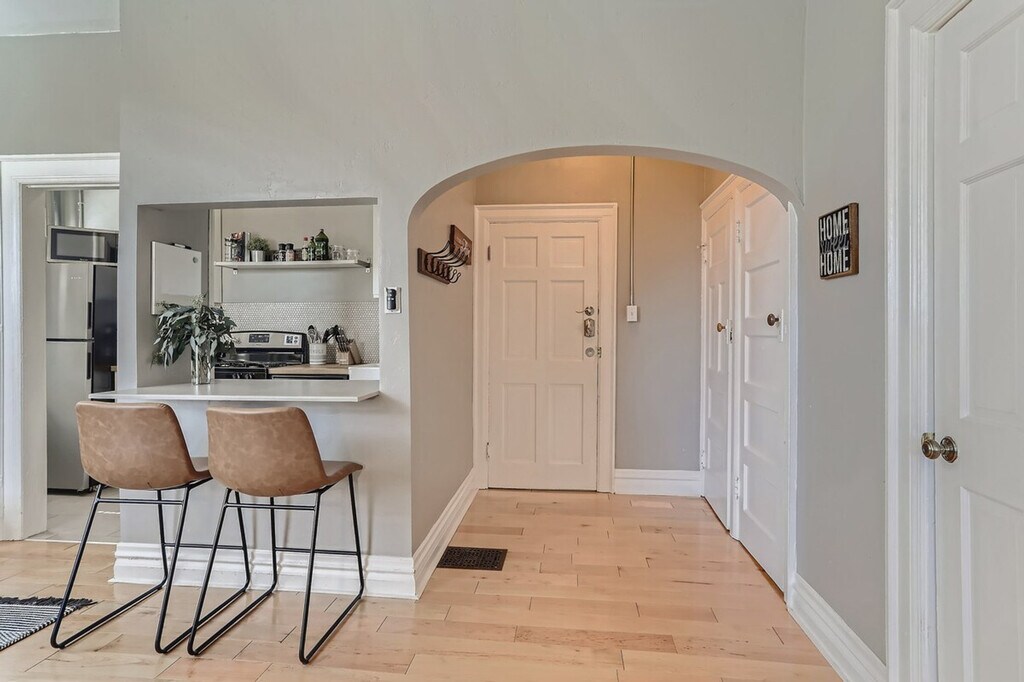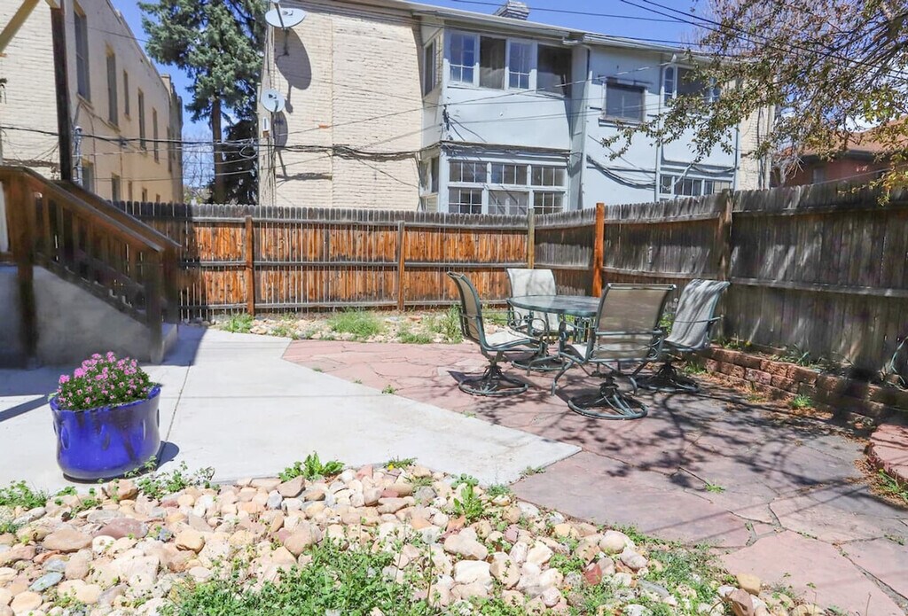 This charming apartment is nestled atop the third floor of a beautifully converted mansion 4-plex, common in Denver’s older neighborhoods. It offers a delightful blend of old-school charm with hardwood floors, a red brick building, and broad windows, complemented by a modern style with a renovated kitchen and bath and hip furniture. Enjoy great natural light from all four sides and a lovely balcony off the kitchen for coffees, reading, or dining al fresco. The apartment features a renovated kitchen and bath, blending modern style with the building's historic charm. The hip furniture adds a contemporary touch to the classic hardwood floors and broad windows, creating a stylish and comfortable living space. Dog-friendly accommodations are available with a pet rent of $90 per dog per month. Please note that there is a strict no cats policy. Located just 1 block from City Park and 5 blocks from Cheesman Park and the Botanic Gardens, this apartment offers easy access to Denver's vibrant attractions. Walk to restaurants, coffee shops, retail, and music venues on Restaurant Row (17th Ave) and Colfax. A short drive takes you to Sprouts Farmers Market, Ideal Market, Whole Foods, and King Soopers. The Cherry Creek Shopping District, downtown Denver, RiNo, and LoHi are all within an 8-minute drive, while Red Rocks and ski resorts are easily accessible for day trips. Nearby hospitals include St Joseph, Presbyterian St Luke’s, and Rose, with UC Health University of CO and Children’s Hospital CO just 20 minutes away. The apartment is accessed via secure key code entry at the front entrance, leading to the foyer, your apartment, and the basement laundry room. Shared coin laundry is available in the basement. The property is non-smoking and non-vaping, with violation resulting in damage fees. Check-out time is 10 AM, with a $50 fee for every additional 30 minutes past check-out time. Personal property left behind will incur a minimum $50 returned item fee. Noise disturbances will result in a warning, with further disturbances leading to eviction without refund. Pets are not allowed on furniture, and any damage or excessive cleaning due to pets will be charged to the guest. Many guests work from home, so please be mindful of noise to ensure a peaceful environment for all residents. [SI]