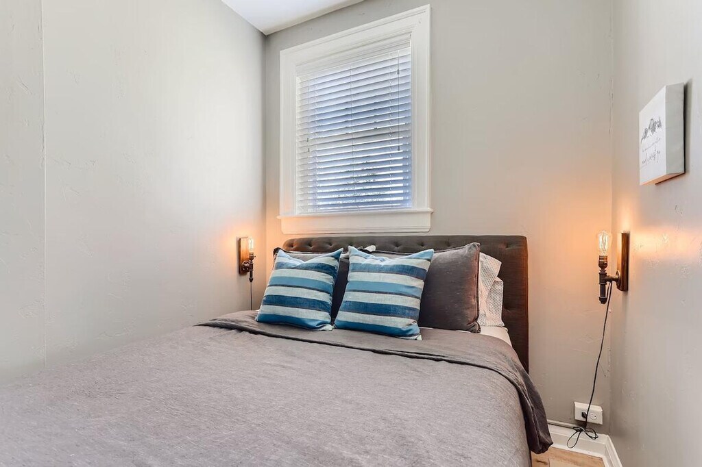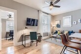 This charming apartment is nestled in a beautifully converted mansion 4-plex, typical of Denver's historic neighborhoods. Located on the second floor, the apartment boasts old-school charm with hardwood floors, a red brick exterior, and broad windows, complemented by modern renovations in the kitchen and bath. The apartment features one bedroom and an additional sunroom off the living room, perfect for an office or reading room. The apartment seamlessly blends classic charm with modern style, featuring hip furniture and a renovated kitchen and bath. The sunroom offers a versatile space for work or relaxation, while the main living area provides a cozy atmosphere for unwinding. Parking is available with three first-come-first-serve spaces in the backyard parking lot, limited to one car per apartment. Street parking is free and available on the block. Pet rent is $90 per dog per month, with a strict no cats policy. Shared laundry facilities are available in the basement, accessed from the backyard stairwell. Situated just one block from City Park and five blocks from Cheesman Park and the Botanic Gardens, this apartment offers unparalleled access to some of Denver's most beloved outdoor spaces. Enjoy a short walk to Restaurant Row on 17th Ave and Colfax for dining, coffee, retail, and music. The apartment is a quick drive to Sprouts Farmers Market, Ideal Market, Whole Foods, King Soopers, Cherry Creek Shopping District, downtown Denver, RiNo, LoHi, and even Red Rocks and ski resorts. Nearby hospitals include St Joseph, Presbyterian St Luke’s, and Rose, with UC Health University of CO and Children’s Hospital CO just 20 minutes away. Guests are responsible for controlling window AC units and ceiling and tower fans, while central heating is managed by the host. A lease agreement is required upon booking. Noise disturbances are taken seriously, with warnings issued for reported issues and potential eviction for repeated disturbances. The property is non-smoking and non-vaping, with damage fees applicable for violations. Check-out time is 10 AM, with a $50 fee for every additional 30 minutes past this time. Guests are responsible for removing personal property at check-out, with a minimum $50 fee for returning items left behind. The apartment includes a sunroom that can be used as an office or reading room, providing a quiet space for work or study. [SI]
