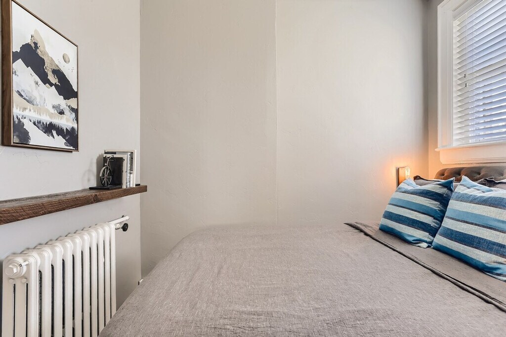 This charming apartment is one of four in a beautifully converted mansion 4-plex, common in Denver's older neighborhoods. It blends old-school charm with hardwood floors, a red brick exterior, and broad windows, alongside a modern style with a renovated kitchen and bath and hip furniture. Located on the second floor at the front of the building, the living room and bedroom windows open to a tree-lined neighborhood street, and a lovely balcony offers a perfect spot for coffee, reading, or dining al fresco. The apartment features a renovated kitchen and bath, complemented by hip furniture that adds a modern touch to the classic charm of the space. Parking is available with 3 first-come, first-serve spaces in the parking lot at the back of the building, with a limit of 1 car per apartment. Street parking is free and available on the block. Shared, free laundry facilities are located in the basement, accessible from the backyard stairwell. The apartment is dog-friendly with a pet rent of $90 per dog per month, but there is a strict no cats policy. Situated just 1 block from City Park and 5 blocks from Cheesman Park and the Botanic Gardens, this apartment offers easy access to a variety of attractions. Walk to restaurants, coffee shops, retail, and music venues on Restaurant Row (17th Ave) and Colfax. A short drive will take you to Sprouts Farmers Market, Ideal Market, Whole Foods, and King Soopers. The Cherry Creek Shopping District is only 8 minutes away, and downtown Denver, RiNo, and LoHi are just 8 minutes by car. Red Rocks is a 30-minute drive, and ski resorts are 1 hour and 30 minutes away. Nearby hospitals include St Joseph, Presbyterian St Luke’s, and Rose, all within 4 minutes, and UC Health University of CO and Children’s Hospital CO are 20 minutes away. Guests control window AC units and ceiling and tower fans, while the host controls central heating from a single thermostat for the building. Early check-in may be available upon request, and check-out time is 10 AM, with a $50 fee for every additional 30 minutes past check-out time. The apartment is non-smoking and non-vaping, with damage fees for violations. Noise disturbances are taken seriously, with warnings given for reported issues and potential eviction for repeated disturbances without refund. All trash must be taken out and dishes placed in the dishwasher upon check-out. Personal property left behind will incur a minimum $50 fee for return. Maintenance issues should be reported promptly, and while efforts are made to resolve them quickly, no refunds or rent reductions are provided for mechanical failures or interruptions. The property is an easy 30 to 40-minute Uber ride from Denver International Airport, and a 10-15 minute Uber ride to anywhere in the city. Public transportation options are available through RTD My Ride app for bus and light rail routes and schedules. [SI]