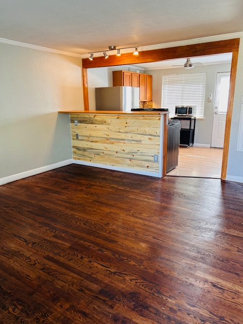 Property Id: 1650691 2-bed/1-bath Updated! New paint, newer gourmet kitchen, butcher block counter tops, newer kitchen appliances, sink, faucet, fridge, gas stove/oven, dishwasher, disposal, microwave, washer/dryer. LED fixtures, ceiling fans, breakfast bar, crown molding throughout the entire space & under cabinet lighting in the kitchen with natural light give this unit an upgraded bright vibe. Ranch layout, just one step to enter, makes an easy move in experience. Enjoy the ease of this single floor living space. Great for pets/kids includes a small, fenced-in backyard without the hassle of extensive maintenance. A shed in the back for extra storage. Comes with 2 off street parking spots. Convenient to public transportation & local amenities coffee shops, Casa Bonita, shopping, eateries & breweries, Crown Hill & Sloan Lake Parks. 40 West Art Line walking/biking art route located in the heart of the Arts district & blocks from the light rail. Easy mountain & downtown access.