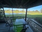 Gorgeous, Turnkey Furnished 2 BR 2 Ba Condo for Rent in Beautiful Gated Community in South Fort Myers! INCLUDES WATER/SEWER,POWER, WIFI, AND BASIC CABLE! Watch the beautiful, amazing sunsets over the golf course and lake from your western-facing screened balcony! This gorgeous rental is ready to bring your toothbrush and move right in! Soaring wood ceilings add a touch of rustic splendor, and comfortable, modern furnishings let you live in style. Wide open kitchen with tons of counter space and cabinet storage! Plantation shutters abound! Queen Bed in Primary Bedroom with plenty of closet space, and a private bathroom with updated dual vanities and a shower. Window overlooks the western view. Double twin beds in the 2nd bedroom help to increase your guest capacity, with guest bath conveniently right beside it. Washer & Dryer right inside the unit! Make this your temporary stay while relocating, for a short-term business contract, or an extended vacation stay! Community Pool just steps away with a BBQ grill area and covered cabana area! Convenient to beaches, airport, major routes, restaurants, shopping & schools. Off-season $2,950/mo; Season $4,000/mo. Offered by Eventide Realty Services, LLC