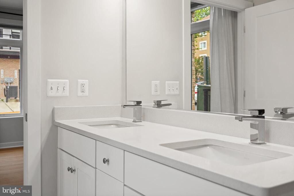 Beautiful and light-filled 2-bedroom, 2-bath condo with private patio available for rent in the desirable Tall Oaks Flats community in Reston. This modern home features 10-foot ceilings, floor-to-ceiling windows with custom blinds, and luxury vinyl plank flooring throughout. The bright, open-concept kitchen boasts white cabinetry, quartz countertops, stainless steel appliances, and a large pantry. The spacious primary suite includes a walk-in closet and ensuite bathroom, while the second bedroom is located on the opposite side of the condo for added privacy. You’ll also enjoy the convenience of a full-size in-unit washer and dryer. The secure building offers one reserved garage parking space, bike storage, EV charging stations, and ample guest parking. Condo is wired for high-speed internet with ethernet pods throughout, ideal for at-home workers. Situated in Tall Oaks Flats, this condo offers easy access to Reston Town Center, Wiehle–Reston East Metro Station, Dulles International Airport, and Tysons Corner, and just 18 miles from downtown Washington, DC. Residents enjoy full access to Reston Association amenities, including 15 swimming pools, tennis courts, playgrounds, community gardens, and the W&OD Trail (just steps away). The Flats at Tall Oaks neighborhood also features parks, outdoor fitness stations, a tot lot, public art spaces, and an amphitheater. Located in a safe, family- and pet-friendly community, within walking distance to Paisano’s Pizza, nail and dog grooming salons, and more.
