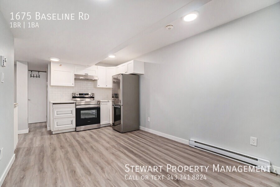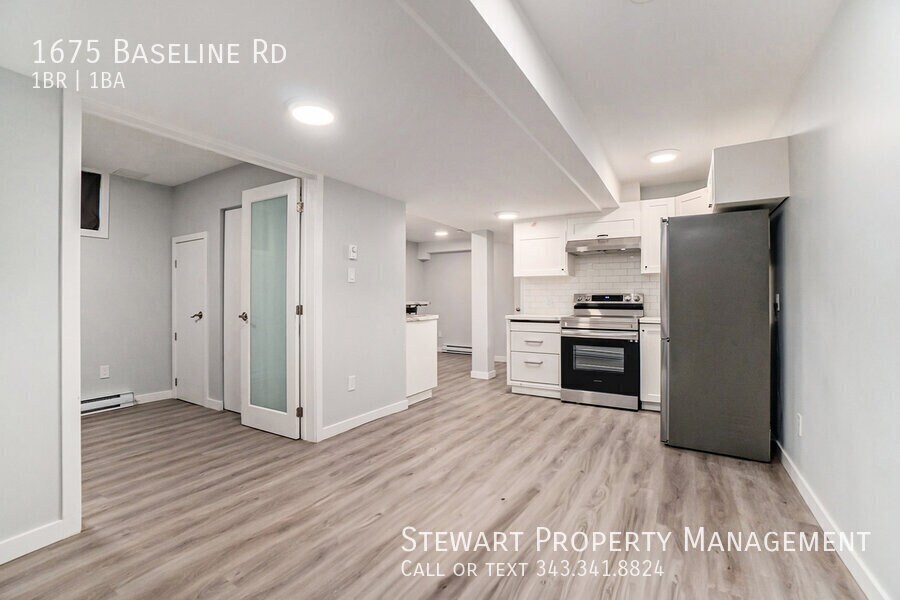 AVAILABLE NOW !! Welcome home to 1675 Baseline Road – Unit B, a bright and modern 1-bedroom, 1-bathroom lower-level apartment in a convenient and central Ottawa location. Perfect for a couple or professional seeking comfort and accessibility, this unit offers a clean living space just minutes from shopping, transit, and Algonquin College. Features: • 1 bedroom • 1 bathroom • In-unit laundry (washer + dryer) • Modern kitchen with stylish cabinetry and ample counter space • Bright living area with large windows allowing natural light • Engeneered wood flooring • Only hydro extra • No parking This beautifully maintained lower-level unit combines practicality and charm, featuring a contemporary layout with open living and dining space, a well-appointed kitchen, and a spacious bedroom with good closet storage. The in-unit laundry provides everyday convenience, while the bright windows make the space feel inviting and airy. Location: • Centrally located near Algonquin College, Merivale Road, and Baseline Station • Close to shopping, groceries, and dining options • Easy access to public transit and major roadways Criteria: • Pets Considered • Non-smoking unit/premises • One-year lease minimum • First and last month's rent required This property is managed by Stewart Property Management