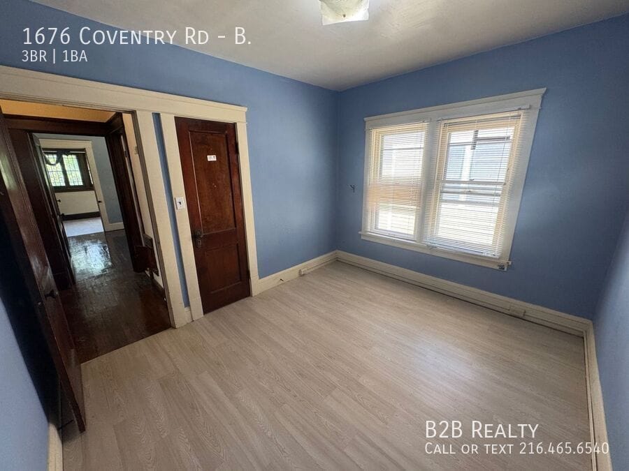 This spacious 3-bedroom, 1-bath Unit B located at 1676 Coventry Road, Cleveland Heights, OH 44118, offers plenty of room for comfort and convenience. Featuring modern amenities, all utilities included, and a prime location, it’s the perfect place to call home. Don’t miss out—schedule a tour today! Interior Features: • Spacious Living Area: The open-plan living area is designed for relaxation, featuring clean flooring and neutral tones that create a warm and inviting atmosphere. • Modern Kitchen: The kitchen includes essential cabinetry and ample workspace for effortless meal preparation, along with modern fixtures and abundant storage. • Comfortable Bedrooms: Each bedroom provides a peaceful oasis, perfect for unwinding and enjoying a restful night’s sleep. • Updated Bathroom: The bathroom is clean, functional, and equipped with modern fixtures to meet your daily needs. Additional Information: • Screening: There is a $25 fee per person over 18 for background checks. Our comprehensive screening includes credit, background, and eviction checks, plus verification of income, job history, and landlord references. We work diligently to approve tenants who may not initially think they qualify. • Neighborhood Insight: Visit the property at various times of the day to get a genuine feel for the neighborhood’s ambiance. • Maintenance: B2B Realty ensures all properties are safe and well-maintained. Tenants are not permitted to make repairs or changes, but our dedicated maintenance team is always available to resolve any issues. Pet Policy: Pets are allowed. Availability: Self-paying tenants. B2B Fees: • Monthly Rent: $1,500 (Recurring) • Refundable Security Deposit: $1,500 (Non-recurring) • Administrative Fee: $225 (Non-recurring) • Monthly Resident Benefit Package: $49.50 (Recurring) • Pet Fee: $30/month per pet (Recurring, if applicable) Apply Now!!!!