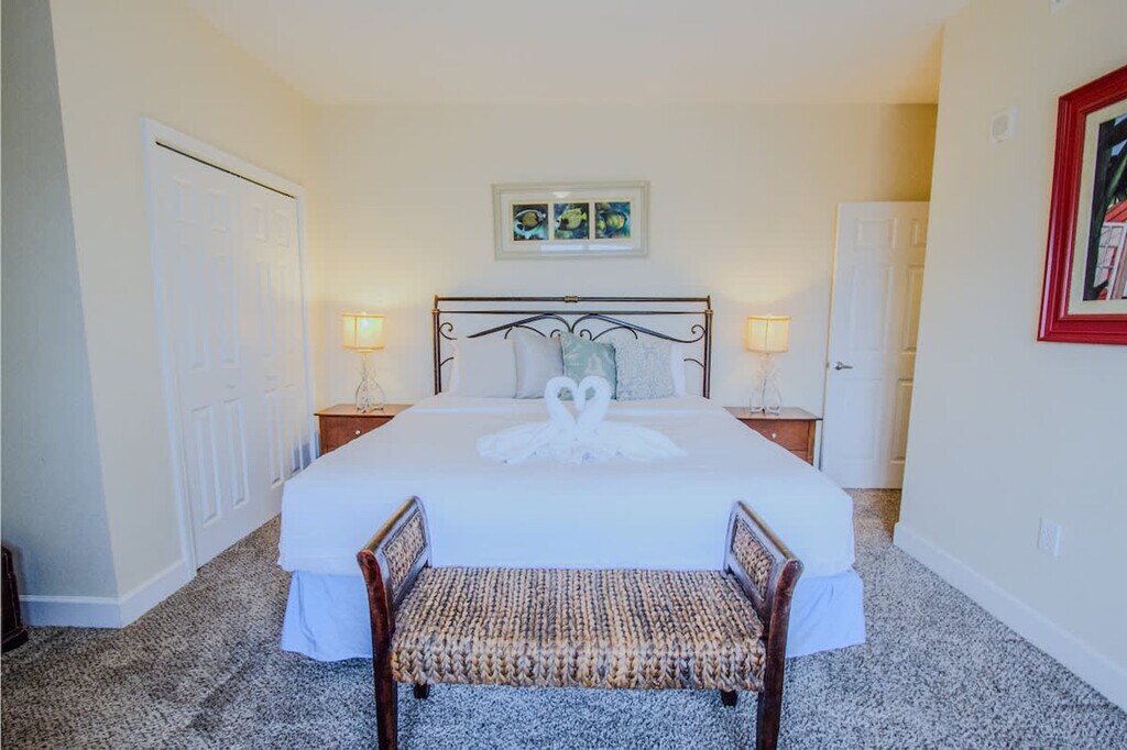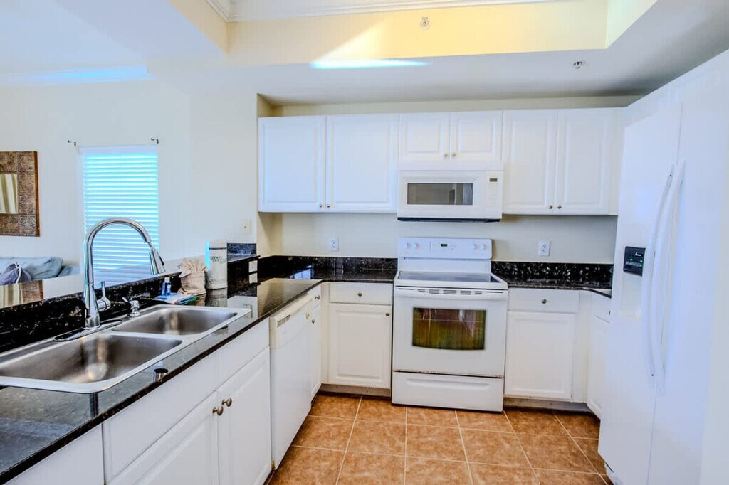 Feel at home in this exquisite, spacious 923-square-foot condo on the 26th floor, offering spectacular Gulf views. This 1-bedroom, 2-bath apartment accommodates up to 6 guests. The primary bedroom features a king-size bed, 40” flat-screen TV, large chest of drawers, two spacious nightstands, and a roomy closet. Floor-to-ceiling glass doors open to an extra-wide 30-foot balcony. The living room offers breathtaking Gulf views through 10-foot-high glass doors that lead to the balcony and includes a brand new sleeper sofa that folds to a queen-size bed with an extra-thick, comfy mattress, a comfortable love seat, and a 60" flat-screen smart TV. The open and airy kitchen has a brand-new, beautiful granite countertop, a stainless steel refrigerator, stove, microwave, dishwasher, electric kettle, coffee maker, toaster, and garbage disposal, and it comes with plates, glasses, mugs, utensils, pots, and pans. Linens, blankets, and towels are provided. The granite top bar includes 4 swivel bar stools, and the nearby dining table seats an additional 2 guests. A converted pantry gives you extra space for groceries. The resort has a registration fee of $39.95 if booked at least 1 day ahead or $50.29 if less than a day before arrival. This beautiful resort is right on the beach and is one of the most beautiful high-rise resorts in Panama City Beach. Quiet hours are between 11 PM and 7 AM. Per HOA regulations and PCB Ordinance 1632, the apartment accommodates only 6 people (including children of all ages). If you have more people, you cannot check in, and your money will not be refunded. The registering guest must be at least 25 years old and will be held responsible for all other parties and/or guests of the registering guest for compliance with this reservation. [SI]
