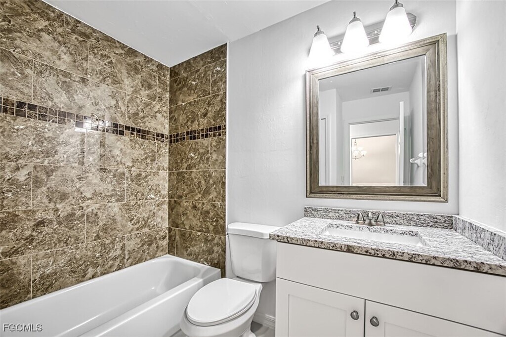 Remodeled ground level 2Bed & 2Bath villa located in the desirable Sanibel Sunset Villas community, minutes from the Sanibel Causeway. This bright and open residence offers 1,203 sqft of living space with vaulted ceilings and a split bedroom floor plan providing privacy and functionality. The unit features a screened front porch, screened back lanai, and an additional private paved outdoor patio, ideal for enjoying the Florida lifestyle. Recent upgrades include brand new stainless steel appliances, new air conditioning system, new water heater, and washer and dryer in residence. Two assigned covered parking spaces are conveniently located directly in front of the unit along with exterior storage. Prime location close to HealthPark Hospital, beaches, dining, and shopping, with easy access to Fort Myers, Sanibel, and Captiva Islands. Approx. 25 minutes to RSW Airport. Annual rental offered unfurnished at $1,750/month. 6 month lease may be considered. Immediate occupancy available.