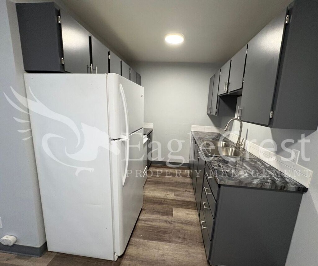 Step into this thoughtfully updated 1-bedroom, 1-bathroom apartment designed for comfortable and practical living. The open-concept main living areas feature fresh paint in neutral tones and durable laminate flooring throughout. This home includes a ductless air system, a gally style style kitchen with new epoxy countertops, decorative-use-only fireplace for added character, and a full bathtub/shower. The kitchen is equipped with a refrigerator and electric stove/oven, and residents have access to on-site coin-operated laundry and convenient off-street parking. Located near a variety of shopping centers and everyday services, this apartment offers easy access to local amenities in a well-maintained setting. Flat Rate Utility Fee $50.00 Water/Sewer/Garbage Tenant is responsible for Electric No Smoking Pet screening for all applicants with or without pets