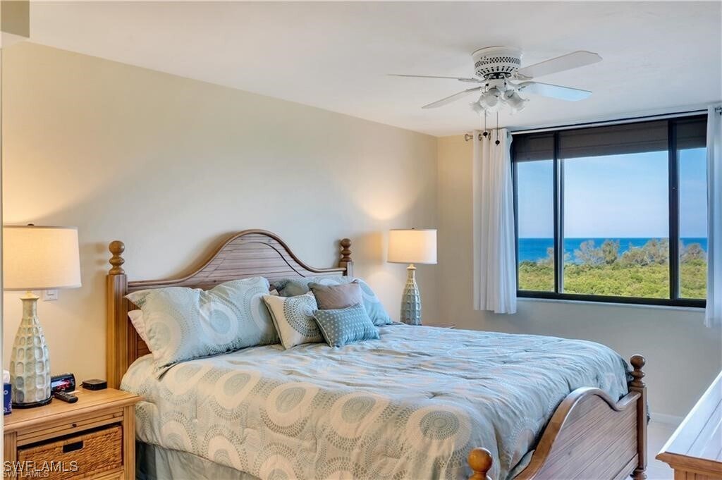 Serenity Condo - 9th-Floor Gulf & Bay View Condominium - Vanderbilt Surf Colony - North Naples This 9th-floor waterfront condominium at Vanderbilt Surf Colony offers panoramic views of the Gulf of Mexico and Vanderbilt Bay,with sightlines extending toward Sanibel Island. The residence features water views from every room and a private screened lanai overlooking both the Gulf and bay,providing an elevated coastal setting surrounded by natural preserves,boating activity,and wildlife. The open-concept living space includes a redesigned kitchen positioned to maximize water views,with waterfall granite countertops,full-size appliances,high-gloss porcelain flooring throughout,upgraded lighting,and modern fixtures. The living and dining areas open directly to a 24-foot screened lanai suitable for outdoor dining or relaxation. The great room includes a recessed 65-inch Smart TV,custom built-in wall feature,remote-controlled fireplace,and leather dual-reclining seating. The floor plan includes two primary suites located on opposite sides of the residence for privacy. Each suite offers Gulf views,direct lanai access through sliding glass doors,king beds,custom closets,and en-suite bathrooms with walk-in showers and upgraded finishes. Interior Highlights • Open-concept kitchen,dining,and living areas • Waterfall granite countertops and full-size appliances • Porcelain tile flooring throughout • 65-inch Smart TV and remote-controlled fireplace • Full-width screened lanai with Gulf and bay views • In-unit washer and dryer • Bedroom Configuration Two primary suites • King beds in both suites • En-suite bathrooms with walk-in showers • Lanai access from both bedrooms Community Amenities – Vanderbilt Surf Colony • Waterfront swimming pool • Kayak launch and fishing docks • Tennis,pickleball,and bocce courts • Gated community with secure building • Two elevators and assigned parking • Community social room Beach & Outdoor Amenities • Short walk to Vanderbilt Beach and Wiggins Pass • Beach chairs,umbrellas,towels,and beach cart provided • Two bicycles available for guest use • Popular nearby walking and biking paths Location Highlights • Convenient North Naples waterfront location • Walking distance to The Turtle Club,Baleen,and Buzz’s Lighthouse • Minutes to Mercato,Whole Foods,Trader Joe’s,Pavilion Shopping Center • Easy access to Waterside Shops,5th Avenue South,and 3rd Street South • Approximately 20 miles to Southwest Florida International Airport (RSW) Inquire about our special shoulder month rates in the Fall and Spring to take advantage of seasonal pricing adjacent to peak months. Off season shorter rentals and longer lease terms may be available,please inquire.