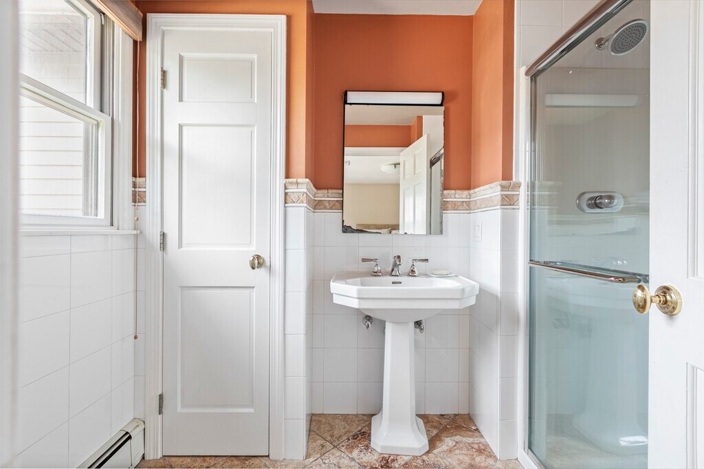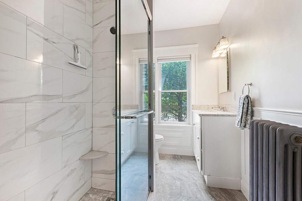 A Commuter’s dream! Easy access onto I-90 and I-95 as well as express public transit into Boston! Family- friendly neighborhood,West Newton public schools,and quiet tree lined side street! This four bedroom apartment is perfect for families with a great layout,including a primary bedroom and en suite bathroom on the main level. Bright,sunny,open concept kitchen-dining room-living room,updated kitchen and bathrooms,with high-end appliances! Separate laundry room,bonus family rec. space in the basement with wood-burning fireplace,plenty of storage,and off street parking! House also has a backyard patio and fruit trees! Open house,Saturday,September 6th @ 12pm-2pm! MLS# 73421784