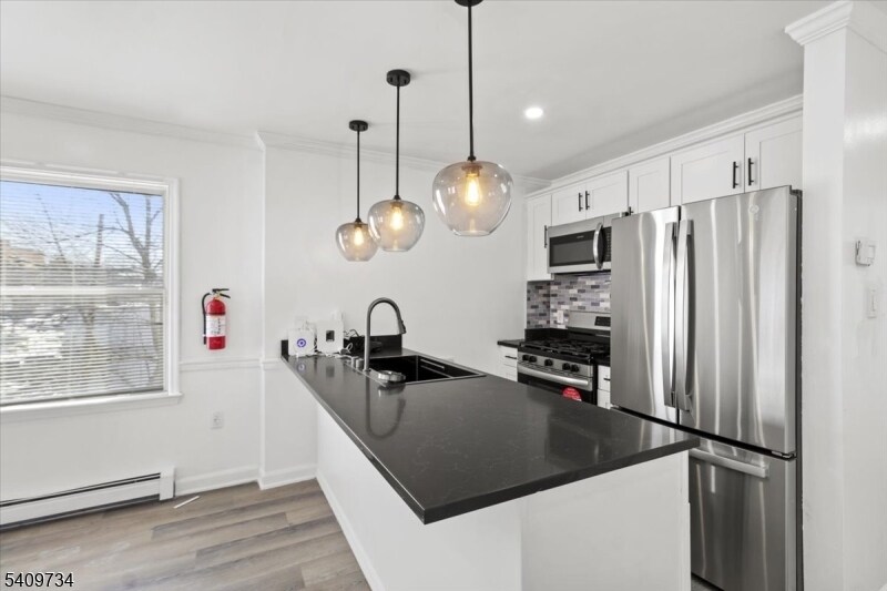 Beautifully fully renovated 3-bedroom, 2 full-bath residence ideally located just 25 minutes from New York City. This sun-filled unit features a spacious primary bedroom with a private en-suite bathroom, offering comfort and privacy. Enjoy a modern open-concept layout where the kitchen, dining, and living areas flow seamlessly perfect for everyday living and entertaining. The stylish kitchen is designed for both function and elegance, complementing the contemporary finishes throughout the home. Additional highlights include in-unit washer and dryer, available parking, generous bedroom sizes, and thoughtfully updated bathrooms. A perfect blend of modern living, convenience, and proximity to NYC this home is truly move-in ready.