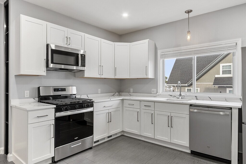 Step into this freshly renovated second-floor home where modern updates meet everyday comfort. The unit has been freshly painted and features a brand-new kitchen with stainless steel appliances,sleek finishes,and plenty of cabinet space. Enjoy central air,in-unit laundry,and two dedicated parking spaces for ultimate convenience.The spacious layout offers three bedrooms,a large sun-filled living room,and a full bath. A private deck overlooks the shared backyard - an inviting spot to unwind or enjoy a quiet morning coffee. Landscaping and snow removal are included,making maintenance a breeze. Backyard is shared space with the first floor unit,please note: use of the pool is not permitted. MLS# 73448135