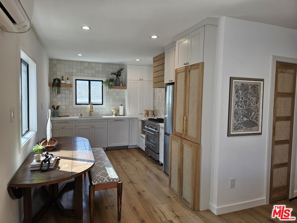 Live in this gorgeously remodeled luxury, two-bedroom beach pad! Just seconds from the sand and ocean, this chic unit is located in an updated building perfectly located next to the beach and near Rose Ave, Abbot Kinney, Main Street , Windward Circle and everything Venice has to offer! The unit feels spacious and has a great layout. Enjoy fresh ocean breezes and light through the many windows throughout. The kitchen is beautiful and functional with custom kitchen cabinets with plenty of storage, quartz countertops, designer tile, gold Kohler faucet and stylish cabinet hardware. Stainless steel Z-line gas stove, custom oak professional hood, microwave, and dishwasher complete the chef's kitchen. There's also a cleverly hidden in-unit stackable washer/dryer. Each bedroom features a large closet with shelving, ceiling fan and recessed lights. The bedrooms are separated by a bathroom for additional privacy. The light and bright, remodeled full bath features designer marble tile, shower/tub combo with a deep bathtub, rain shower and a handheld body spray, a window for extra light and ocean air. Gorgeous hardwood engineered, wide-plank floors and recessed lights flow throughout the space. The unit also has a small sitting area outside the front door, and it also comes with one car parking, and with the possibility for an additional space for a fee. Live at the beach in this perfect, cozy beach pad! If you love the beach and nice finishes, this is your spot! MLS# 26660507