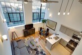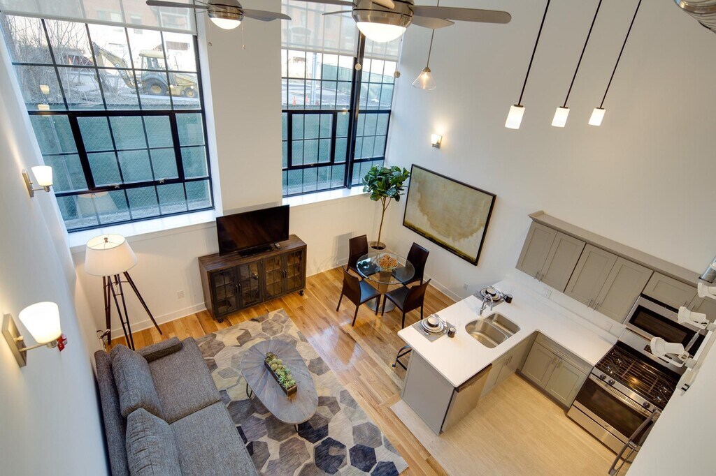 Spacious 1,422 SqFt - top floor unit. The apartment is part of an adaptive reused conversion called Lafayette Lofts. The unit features high ceilings, GE stainless steel appliances, quartz counter tops, in unit washer and dryer and access to all of Lafayette Lofts common amenities including roof deck and gym. Parking available for $150/month.
