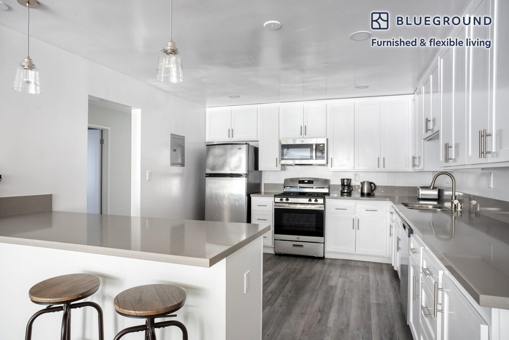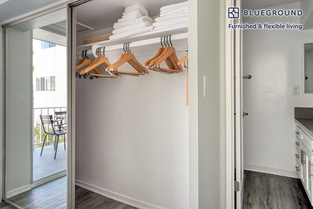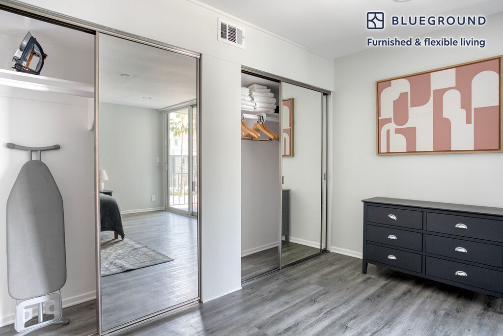 Show up and start living from day one in Beverly Hills with this beautiful two bedroom Blueground apartment. You’ll love coming home to this thoughtfully furnished, beautifully designed, and fully equipped Beverly Hills home. (ID #LAX1032) The advertised rate of $5,270/month is the lowest available price, based on a 11 month(s) and 22 day(s) stay with a move-in date of January 1, 2027. Rates vary depending on the duration of stay, season, and other parameters. For exact pricing and additional pricing components, please visit our website and enter your desired move-in and move-out dates. The rate is applicable when billed upfront; it can be higher if billed in multiple payments. Brokers are welcome to reach out. Were you looking for an unfurnished lease? Try Blueground instead and upgrade from unfurnished to furnished living: - Furnished at rates comparable to unfurnished - No setup or furniture costs - save thousands - Move-in ready - save time, just bring your suitcase Designed with you in mind As with any Blueground apartment, you’ll find a thoughtfully designed space complete with beautiful furniture and a fully equipped kitchen in this two bedroom property. And, thanks to our superior quality mattresses, luxury linens, and towels, you can relax knowing you’ll always feel comfortably at home. When you’re ready for some fun, you can take in the Beverly Hills vibes or bring the entertainment to you with the premium wireless speaker or smart TV. This apartment also offers in-apartment laundry. Sleeping arrangements King Bed, 70.8in/180cm King Bed, 70.8in/180cm Amenities Building amenities unique to this two bedroom apartment include an on-site: - Dryer - Elevator - Swimming pool - Washing machine - Lounge - Parking - Pets allowed Arrival and ongoing support The entire apartment is yours to enjoy! Throughout your stay, you’ll have access to our Client Experience team through the Blueground App. You can schedule additional cleanings, submit maintenance requests, and view our neighborhood recommendations with just a few taps. We’ll share all details upon confirmation of your stay. Ideally Located This furnished apartment is located in Beverly Hills. It's an upscale neighborhood that is home to many celebrities, luxury hotels and the famous Rodeo Drive shopping district. The star power here is palpable. To relax in an expansive green space, head to the Beverly Gardens, which is a park that stretches for 22 blocks along Santa Monica Boulevard. Next to similarly star-studded Bel Air and West Hollywood, this area has become a must-see destination. The Venice Boardwalk and LAX are both about 25 minutes away by car. Other things to note Building amenities may have an extra cost. This Blueground apartment has flexible lease options, allowing you to book it for one month, a year, or more. Pets are welcome, though weight limits and breed restrictions apply and may incur fees. Parking is offered based on availability and is subject to a fee. We take great pride in ensuring every photo displayed is shot in our own units with our actual furnishings. That said, we regularly refresh our decor and furniture arrangement, which may differ from what’s pictured.