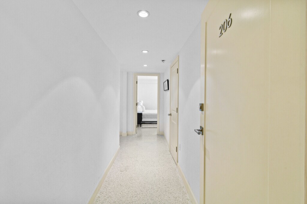 Ocean Towers North - Coastal chic. Timeless Nestled along approximately 300 feet of private beach, Ocean Towers North offers a great lifestyle Palm Beach lifestyle. Bask in the warm sea breezes and relax beneath swaying palm trees on the pristine sand and turquoise waters just steps from your door. This charming designed two-bedroom, two-bath residence features a spacious floor plan. The home includes an enclosed kitchen with Maytag appliances, double-glazed windows, and the original terrazzo flooring throughout. The terrace provides a glimpse of the ocean as well as views of the iconic Warden House on North Ocean Boulevard. The building has recently been completed important long term project The condo was last renovated in 2003.