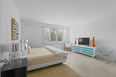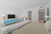High floor, beautifully and comfortably furnished condo in ocean front, building within walking distance to Houses of Worship, restaurants and shops. Queen size bed in the bedroom and additional sleeper sofa(s) in the living room. Resort-like amenities include private deeded beach parcel w. chairs and umbrellas, large swimming pool, changing rooms, function room, gym, bicycle storage. Lushly landscaped pool area with many places to sit and enjoy. Full time manager and 24 hour doormen.
