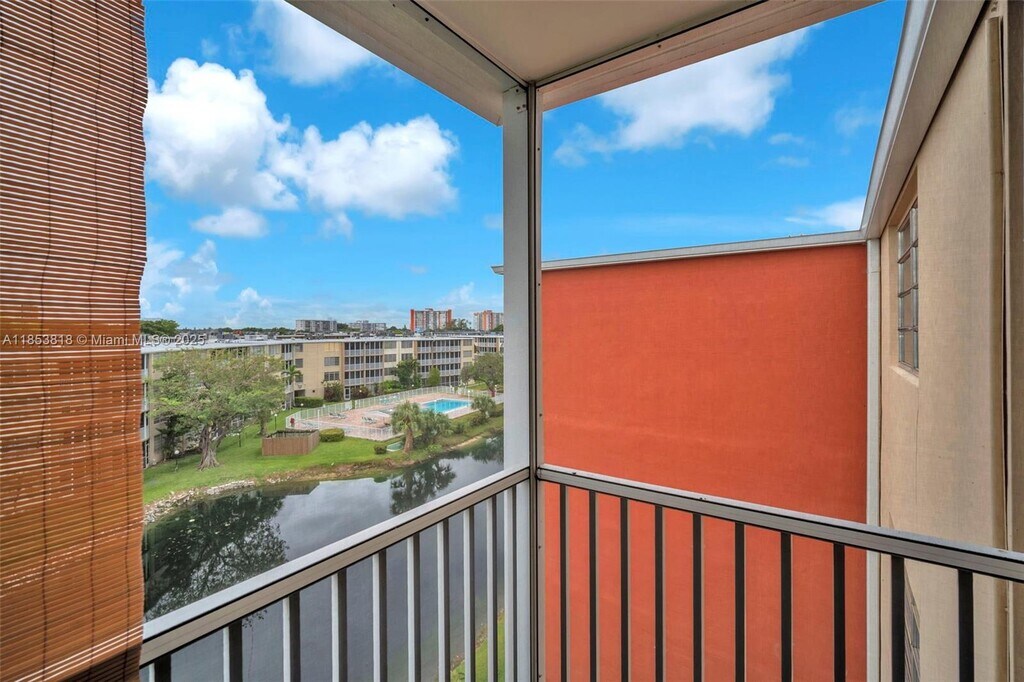 Discover this charming 1-bedroom, 1-bath condo on the 5th floor, unit includes a spacious screened balcony overlooking the tranquil lake, ideal for lounging year-round. Inside, the open living space maximizes comfort, with tile throughout living areas, laminated floors in the bedroom with generous closet space. Residents enjoy the pool, on-site laundry facilities, convenient management office on the first floor, elevator service, and 24/7 gate security. Water, trash, and assigned parking included. Jade Winds offers the ideal balance of affordability, convenience, and lakeside charm. Centrally located—just minutes from Aventura Mall, I-95, beaches, and local shops.