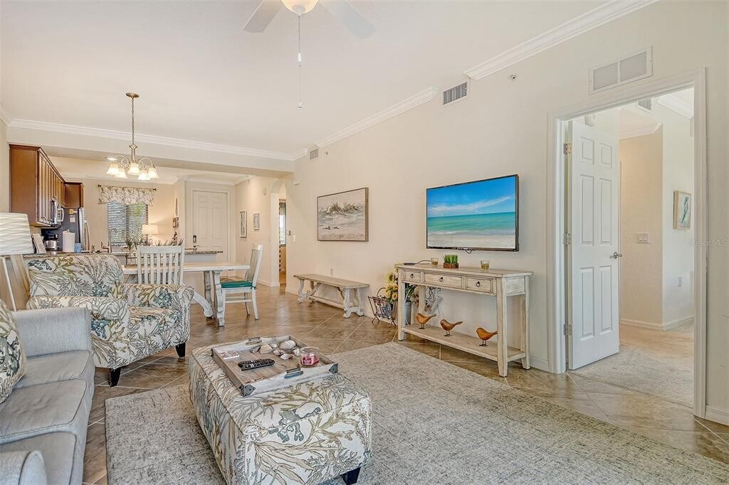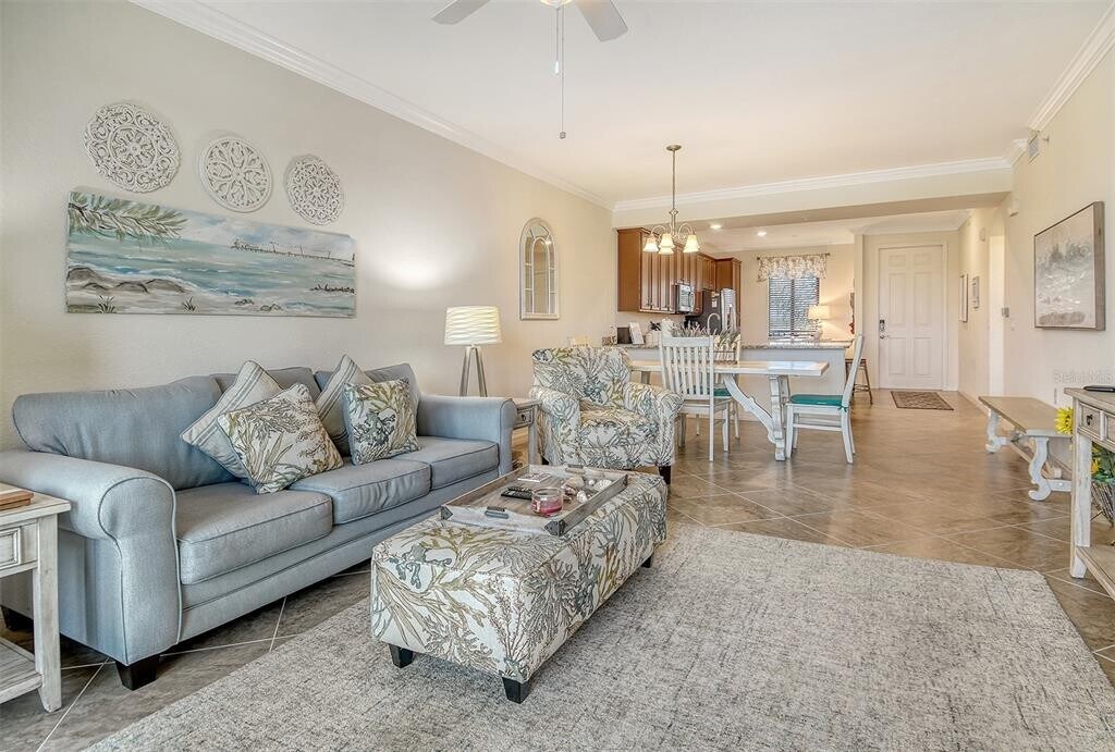 WELCOME TO LAKEWOOD NATIONAL...A most sought after vacation community. This 2 bedroom,2 bathroom unit offers all the comforts of home. Turnkey furnished with a king size bed in the main bedroom and a queen size bed in the guest room. Open floor plan,tastefully decorated makes it a most welcoming warm atmosphere. Fully equipped kitchen with all stainless steel appliances and an island counter with bar seating. Enjoy the balcony with comfortable seating overlooking the lake. There is plenty of shopping and restaurants in the nearby area. *HOA transfer membership fee is $642.00. Don't miss out on this wonderful vacation rental. BRADENTON VACATION RENTALS,LAKEWOOD NATIONAL RENTALS,JENNETTE PROPERTIES SEASONAL RENTALS. MLS# A4659917