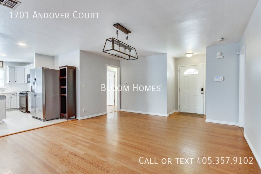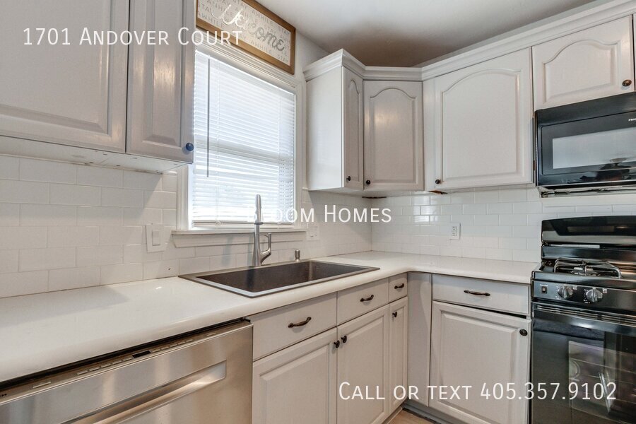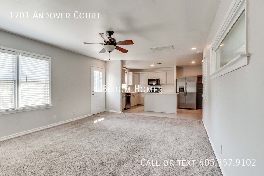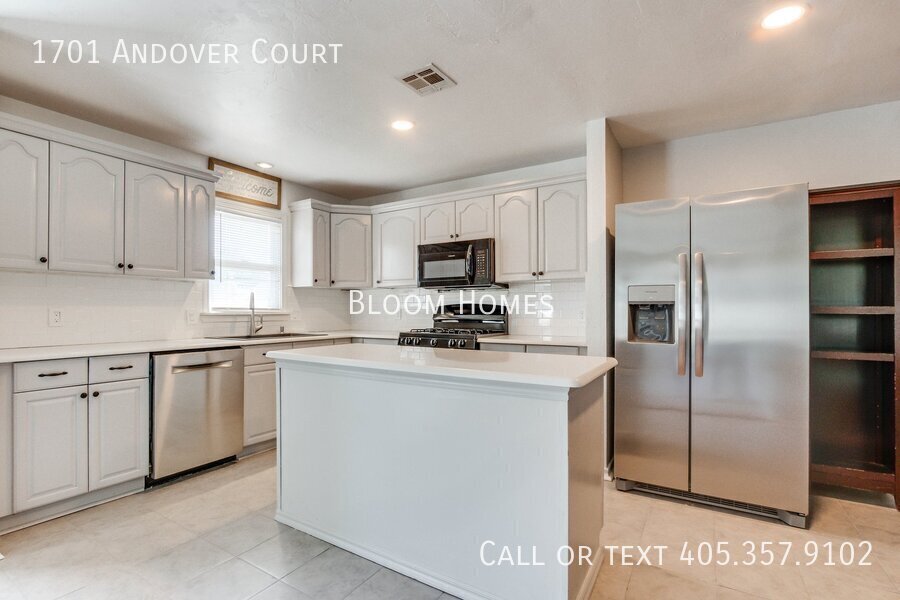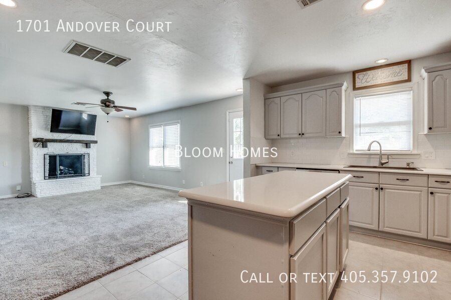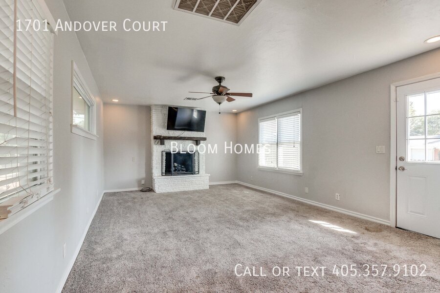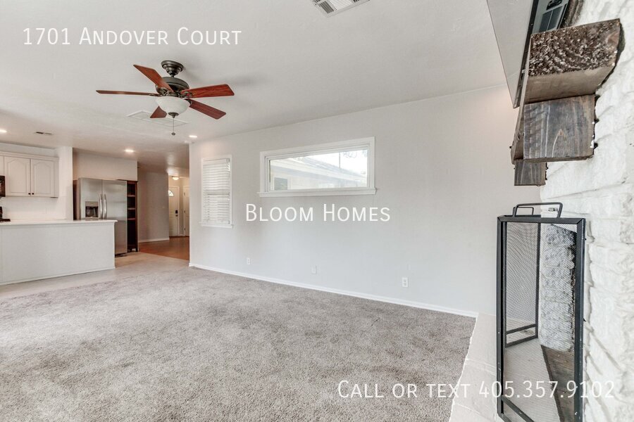 Celebrate the season with $500 off your first full month’s rent when you sign a lease by Thanksgiving! Welcome to 1701 Andover Ct, a stylish 4-bedroom, 2-bath home tucked on a peaceful corner lot just north of Nichols Hills. Here, convenience meets comfort, close to Lake Hefner trails, Casady School, and the boutiques and dining at Classen Curve. Step inside to find bright, open living spaces with modern finishes throughout. The kitchen shines with sleek stone countertops, stainless steel appliances, and a central island perfect for prepping, entertaining, or simply gathering with friends. Two spacious living areas flow naturally, one centered around a cozy fireplace that invites relaxed evenings at home. The primary suite offers both function and luxury, featuring a generous closet, a beautiful en suite bath, and its own stackable washer/dryer. Three additional bedrooms share a large hallway bath with plenty of space for everyone. Outside, the large backyard and storage shed give you room to spread out, play, or garden. Refrigerator, washer, and dryer included! Requirements: household income 3x monthly rent, 600+ credit score, no evictions. Application fee $35, schedule your showing today and make this home yours before the holidays!