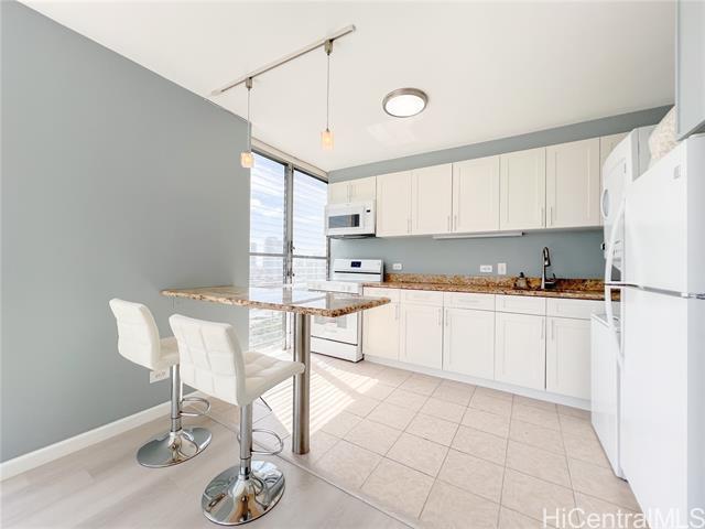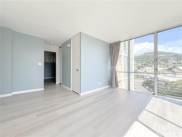 Available now! Newly renovated, 736 SQ FT, 2 Bedroom, 1 Bathroom, 1 assigned uncovered parking at Hale O Kalani Towers in a quiet Makiki neighborhood. Unit is located on the 7th floor with lanai. Freshly painted, new washer & dryer in unit, new range/oven, vinyl plank flooring, ample closet and storage space. Amenities include swimming pool and on-site resident manager. No pets, no smoking. Rent includes water and sewer. Tenant is responsible for electricity, cable, and internet. Conveniently located near University of Hawaii at Manoa, Ala Moana Shopping Center, Ala Moana Beach Park, Waikiki Beach, shopping, dining, hospitals, freeway access, bus lines. Renter's insurance is required. $25 non-refundable application fee per adult applicant.