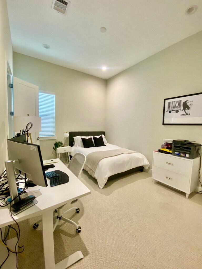 Lovely home located near the heart of downtown in the Hardy Yards area. Close to the light rail and has stunning views of downtown from the primary bedroom. Comes with a fully turfed backyard and a gazebo, a rare thing to have this close to downtown! 5mins from Sawyer heights that has Target, Chick-fila, and many other amenities. 5mins walk to the Buffalo Bayou trail and to the University of Houston Downtown Campus. With this house, can get exclusive neighborhood access to the UHD gym. It's also two stops away from the White Oak Music hall! Walking distance to local bars like Bar Astronaut and Rabbit's Got the Gun.