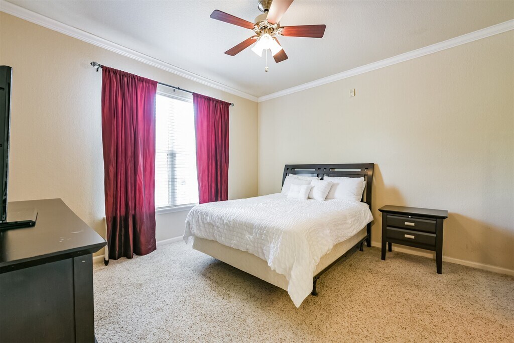Experience comfort and convenience in this beautifully furnished 2-bedroom,2-bath condo on the 4th floor of a gated community with 24/7 manned security. Ideally located near the Texas Medical Center,this home offers quick access to Hwy 288,69,610,and 45—perfect for medical professionals or visiting families. Enjoy an open-concept living area with granite countertops,42” cabinets,under-cabinet lighting,stainless steel appliances,and a wine rack. Both bedrooms feature walk-in closets and ensuite baths. Includes refrigerator,washer,and dryer. Community amenities include complimentary Wi-Fi,a 24-hour fitness center,resort-style pool,and a clubhouse for private events. Available fully furnished with a minimum 1-month lease—just bring your suitcase and settle in! MLS# 93752797