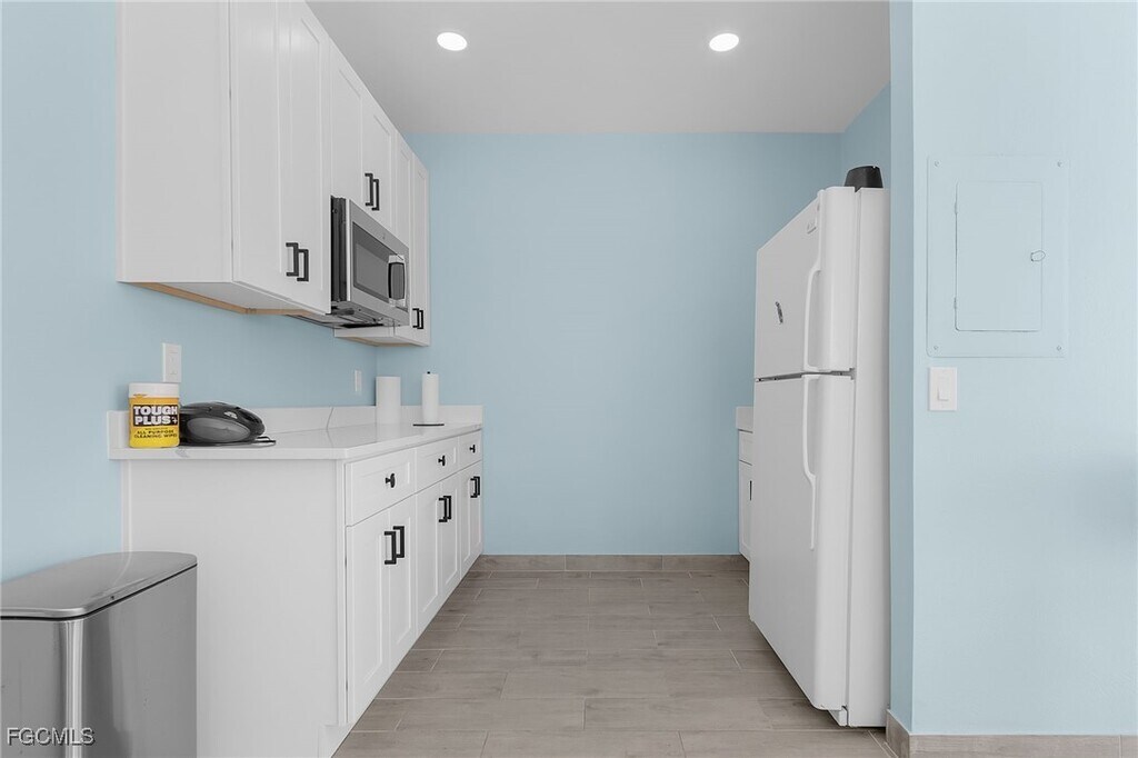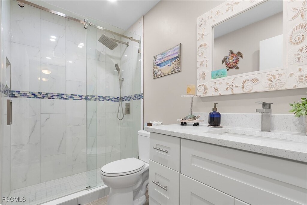 This beautifully updated 2 Bedroom,2 bath,1st floor waterfront condo has tile flooring throughout a wonderful view of Bikini Basin. The kitchen has stainless steel appliances,gorgeous backsplash and granite counter tops. The primary bedroom is spacious with adjoining bathroom. The primary bathroom offers plenty of counter space and walk in shower. The guest bedroom is spacious. The guest bathroom is updated and also offers a walk in shower. This property has a community pool with a bird's eye view of Bikini Basin where you can park your boat on the available dock. The Clubhouse has a kitchenette,A/C,fridge,sink and microwave with plenty of seating for get togethers. This quiet location in a 10 unit building located in Downtown Cape Coral only a few blocks to the river. Close to shopping & dining. Easy access to Fort Myers via the Cape Coral Bridge. Enjoy southern exposure sunset views,gaze out to Bikini Basin & open water all from your own private lanai. The pool area is designed for entertaining your family,friends or guests. outfitted with a heated pool,shuffle board,club house and grill. HOA community