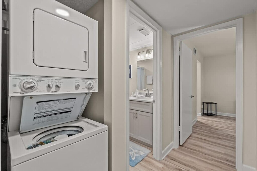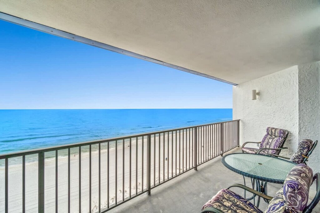Feel at home in this beautiful oceanfront retreat in Panama City Beach. This 2-bedroom, 2-bath apartment sleeps 6 and offers direct beach access just steps away. Enjoy the fresh ocean breezes and watch the waves roll in on the balcony. This home includes air conditioning, Wi-Fi, a television, a well-appointed kitchen, a washer, and a dryer, ensuring there will be plenty of fun for everyone to dive into. Guests must register online with the condominium prior to arrival for parking. Less than two miles from your rental, your family will surely enjoy a trip to Gulf World for the dolphin show, bird show, and many other animal encounters or enjoy a day of shopping at Pier Park approximately 1 mile away. With ground-level covered parking, you may never want to leave! Aquavista requires the primary renter to be a minimum of 25 years of age and to accompany all guests. As of 1/1/2024, Aquavista will be a smoke-free resort. Smoking will still be permitted in designated areas outdoors. Per PCB Ordinance 1632, maximum occupancy is 6 guests, including children and infants. Failure to abide by the ordinance may result in a fine and ejection. [SI]