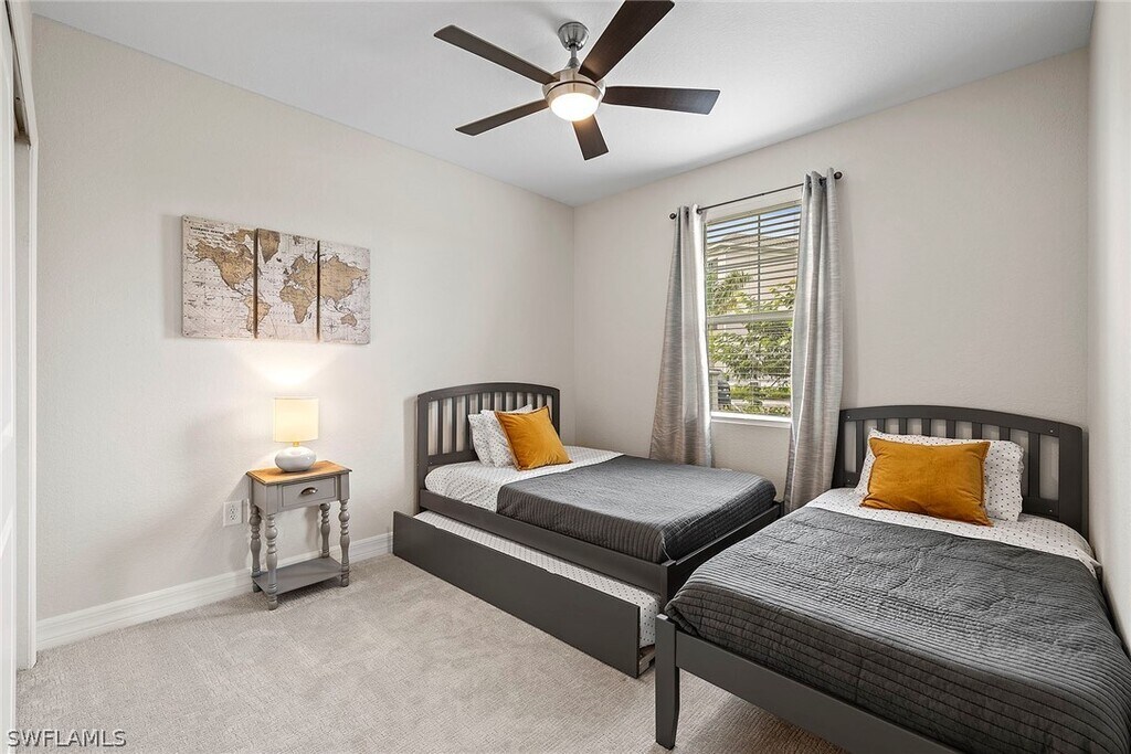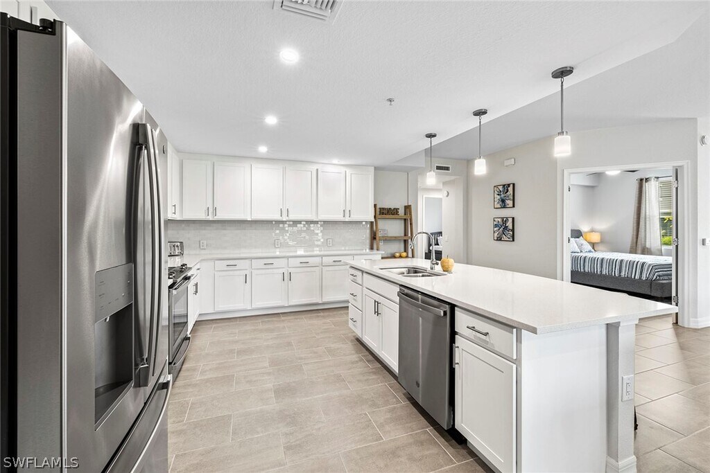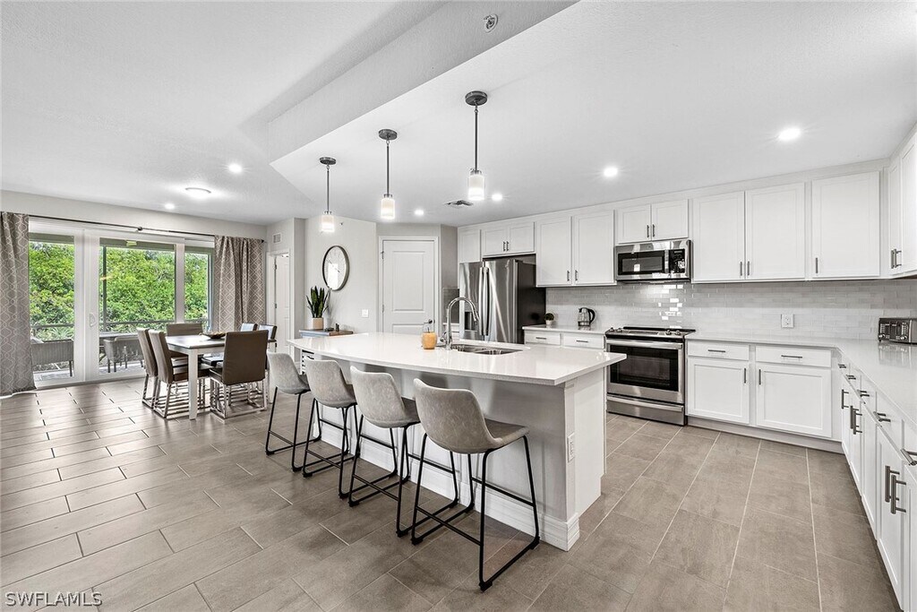 Enjoy the lifestyle of this Grand Coach Home in the new Antilles Community. This spacious first floor condo has an open concept floor plan and includes 3 bedrooms,2 full bathrooms,screened lanai and 2-car garage. Besides being tastefully furnished,this condo offers standard features and finishes to include fine and contemporary elements such as Shaker style kitchen cabinetry,porcelain tile flooring,quartz countertops and stainless steel kitchen appliances. The unit is conveniently located within walking distance to the community Flamingo Club. Off Season rate May-Nov 2023: $3,950. Antilles is a private gated community developed for its quiet setting adjacent to a wetland preserve while having the comforts of resort level appointments located minutes from downtown Naples. Antilles also boasts the 5 acre Kingfisher Lake and Linear Park Exercise Trail. The community amenities include The Flamingo Club that offers bocce and pickleball courts,fitness center,infinity edge pool,and TV and lounge area. Antilles is located near Marco Island and Naples beaches,fine dining,galleries,shopping and fishing and boating opportunities abound in all directions,all year round.